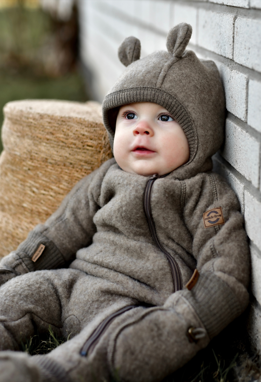 Dásamlegur ullar galli úr mjúkri merino ull sem andar. Gallinn er með hettu með eyrum sem gefur gallanum krúttlegt útlit. Snúningsermar og skálmar halda hita á litlum höndum og fótum. 95% ull ... Sjá nánar