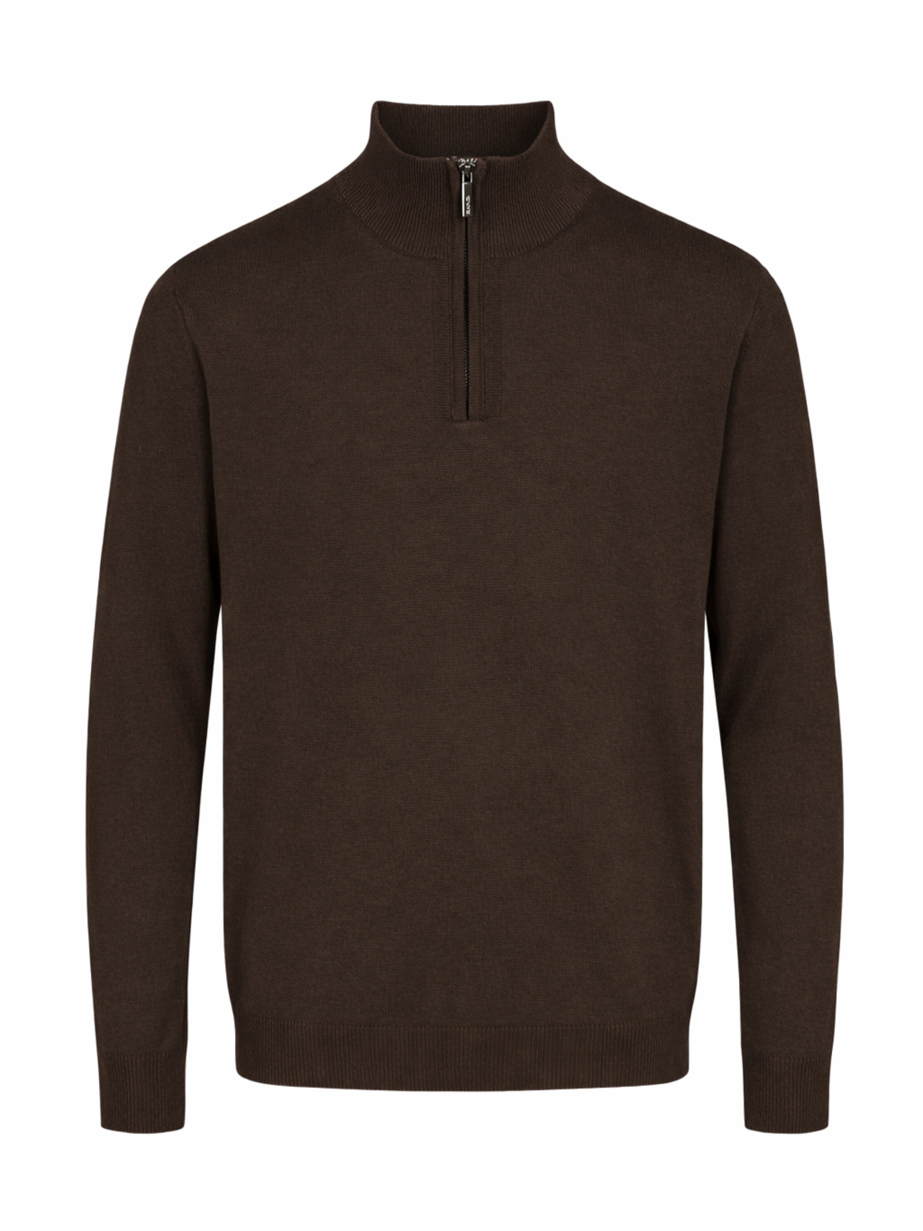 Modern fit half zip sweater with high neck Merino extra fine wool Made in Italy Rib at neck, hem and cuffs Fit true to size 100% Merino Wool