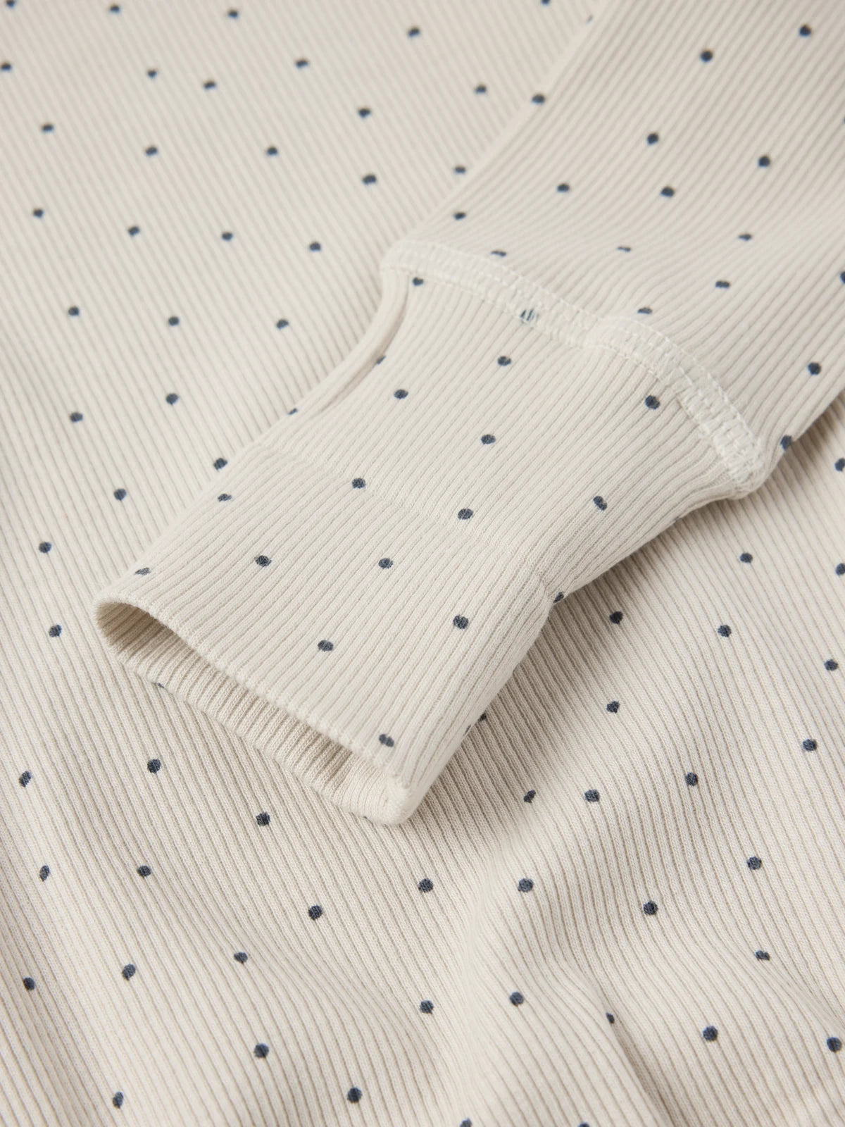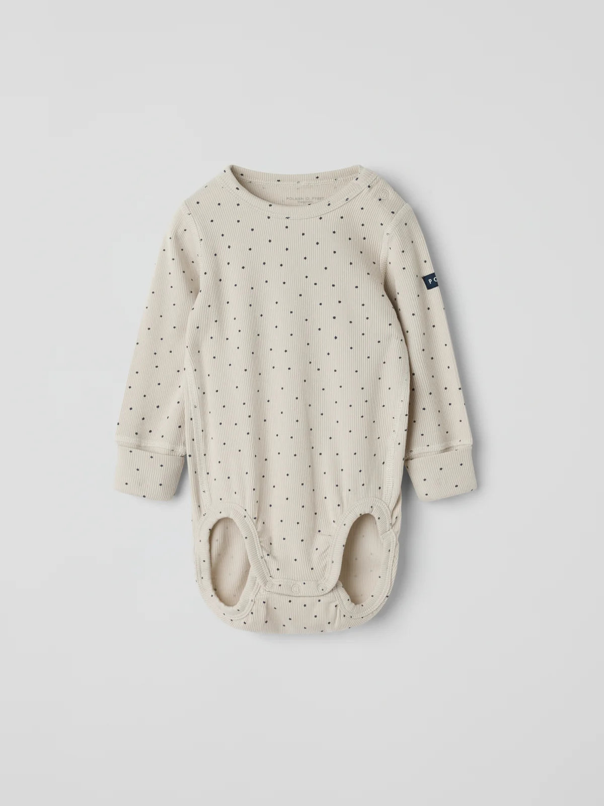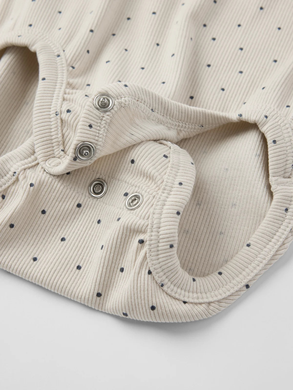 Ribbed bodysuit spot Light and flexible Ribbed in a soft blend Tencel™ lyocell organic cotton Ribbed babygrow in a soft blend of Tencel™ lyocell and organic cotton. The material mix feels ... Sjá nánar