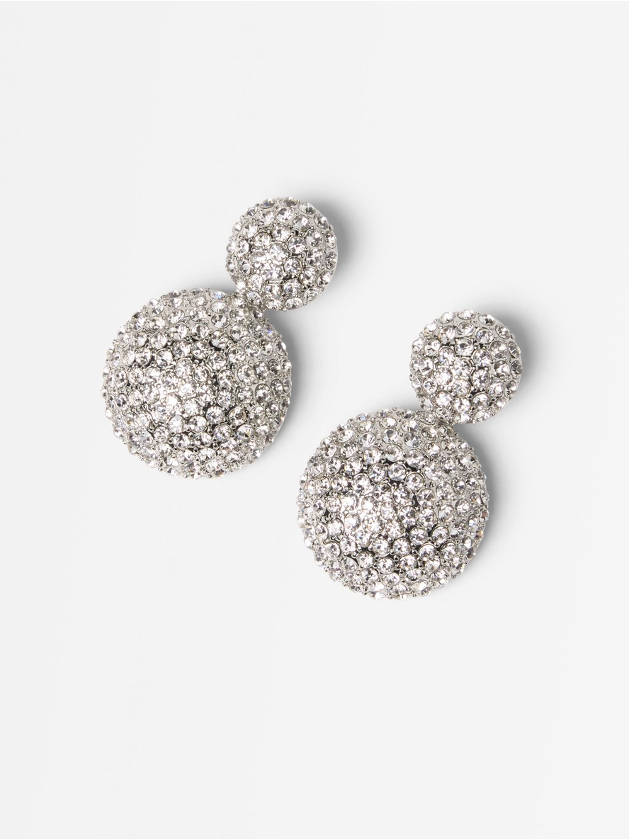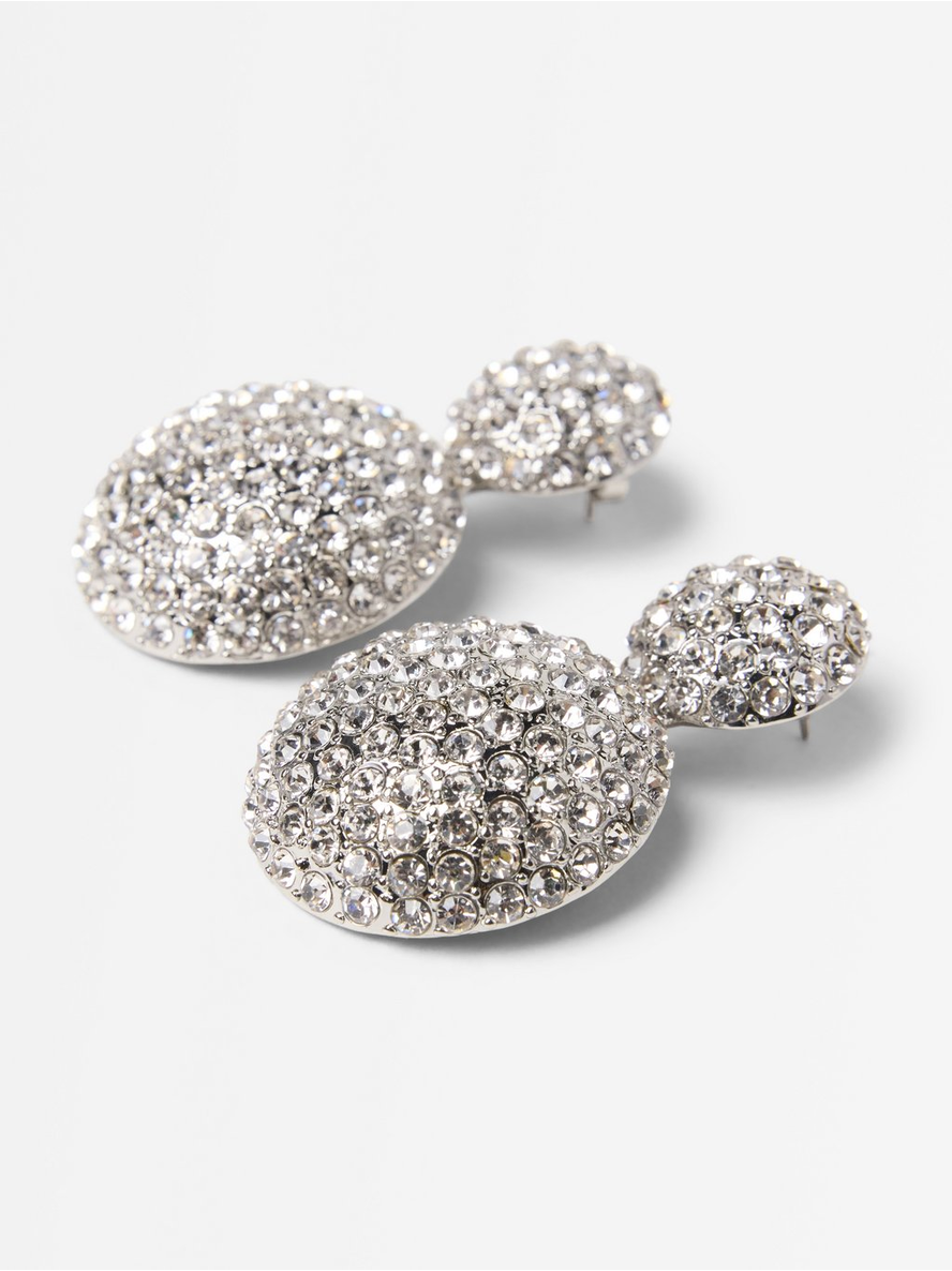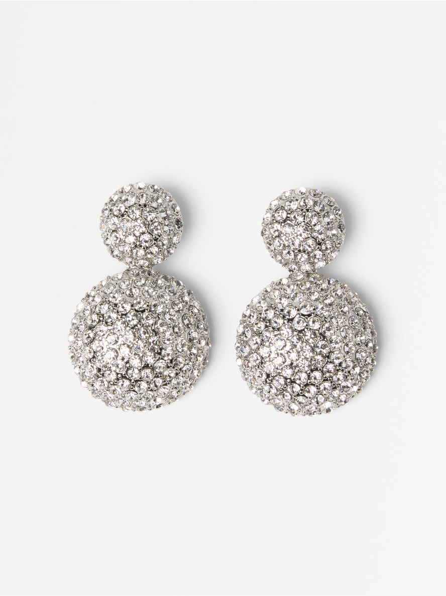 Stylish pendant earrings with sparkly rhinestones. 70% málmur 30% gler