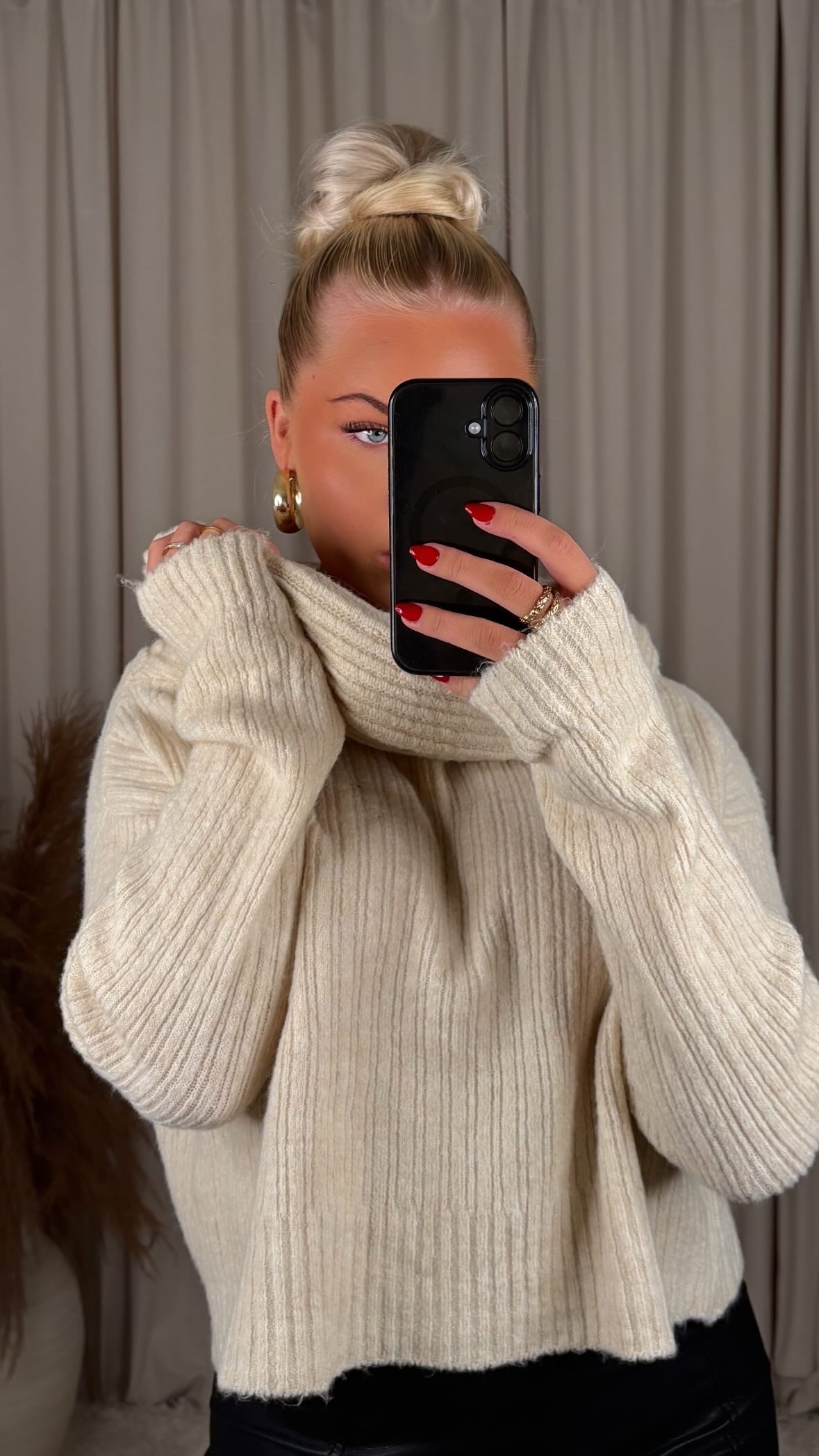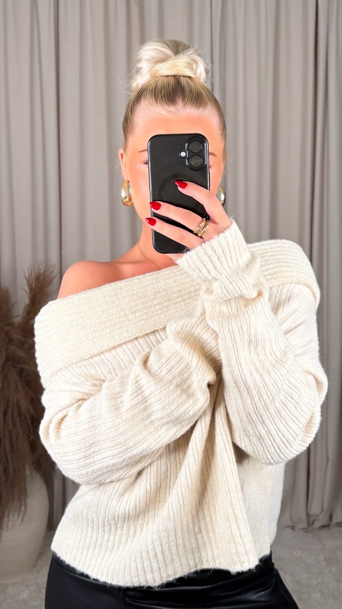 Æðislega flott off shoulder peysa úr mjög þæginlegu knit efni, það er góð teygja í efninu og er true to size modelið er 168cn og er í stærð S/M
