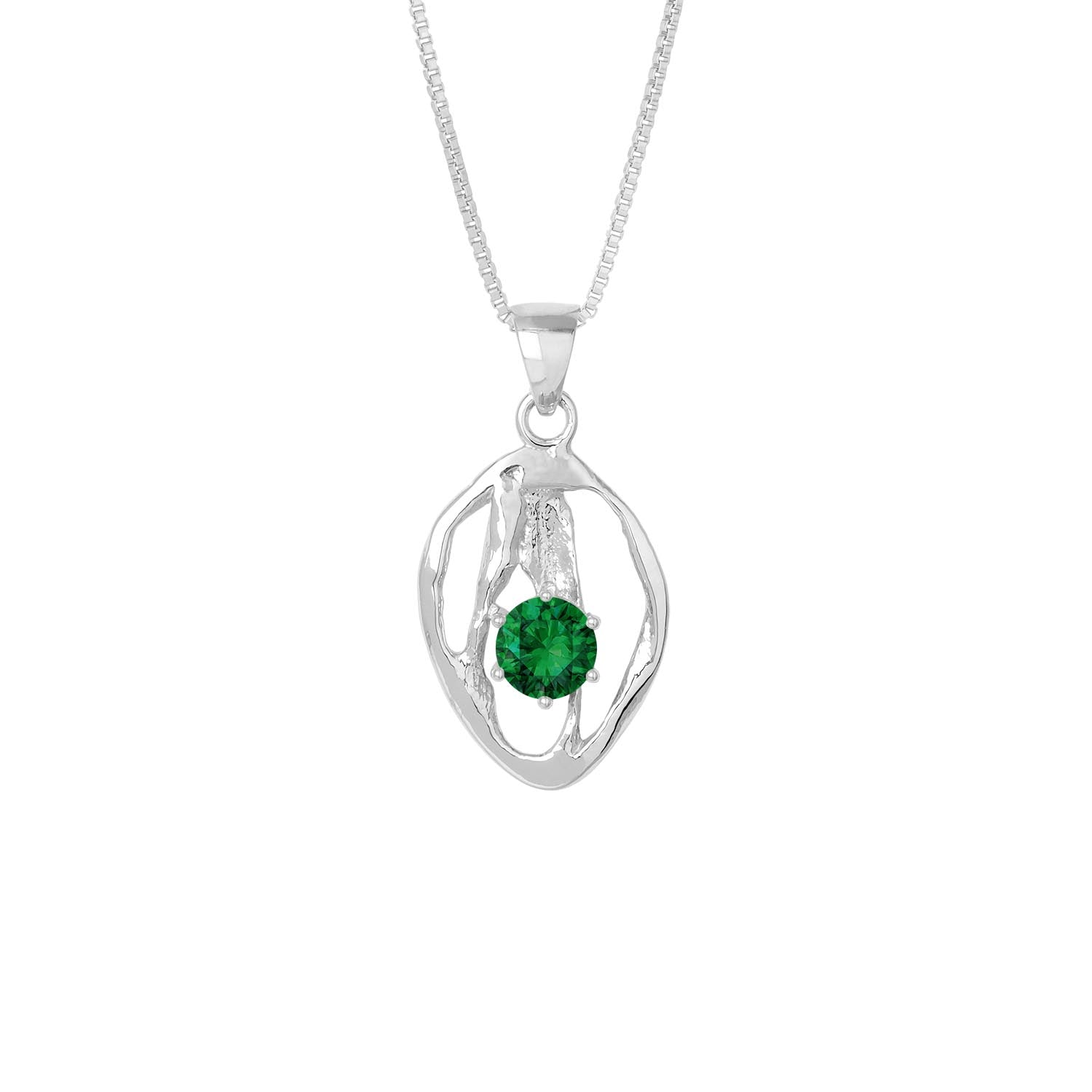 Silfurhálsmen með emerald steini
