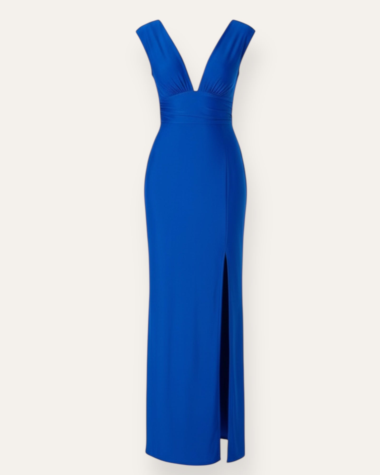 V-háls maxi kjóll með klauf  Elegant og aðsniðinn maxi kjóll úr mjúku og teygjanlegu spandex efni sem mótar líkamann á fallegan og flattering hátt. Djúpt v-hálsmál og breiðar axlir gefa ... Sjá nánar