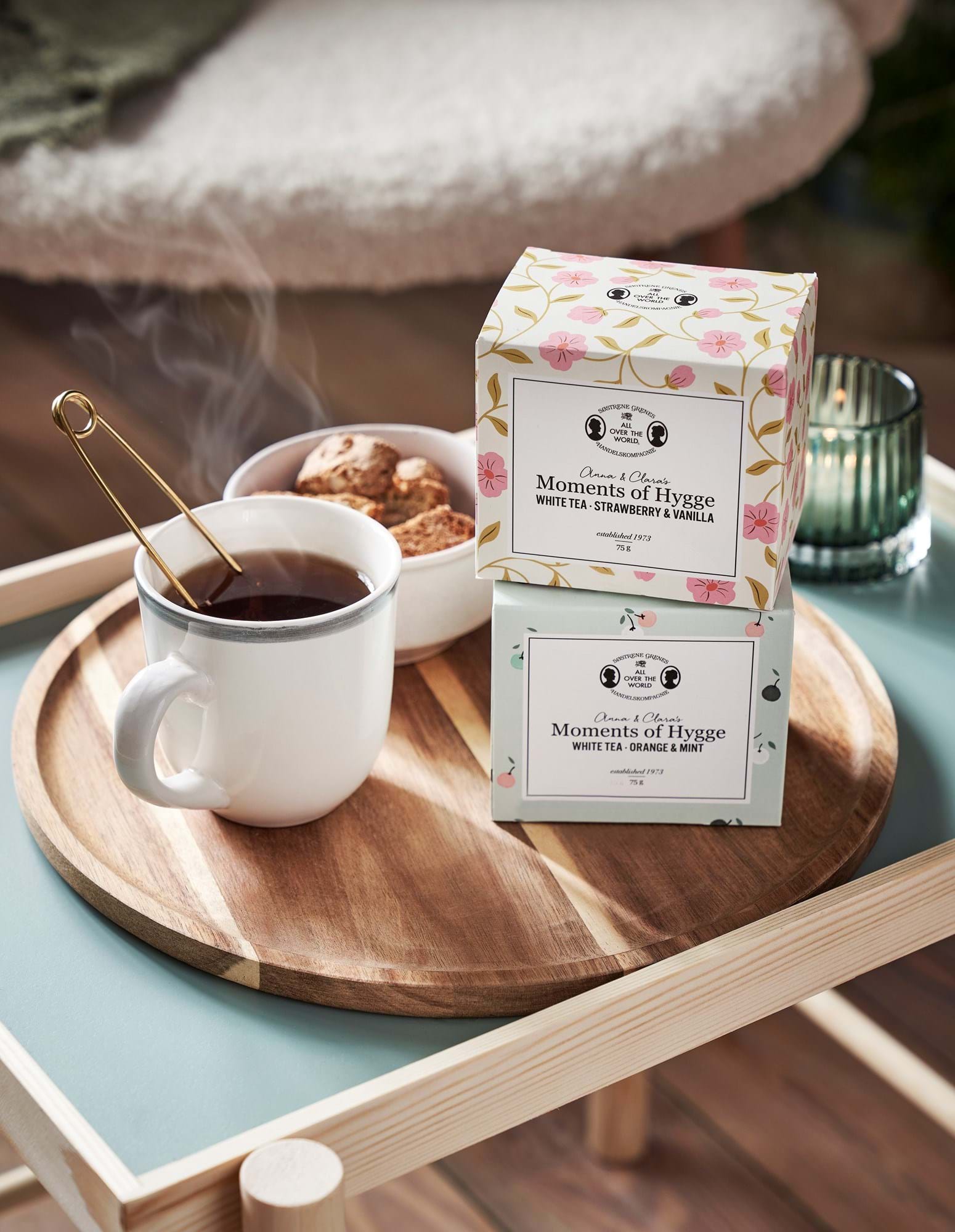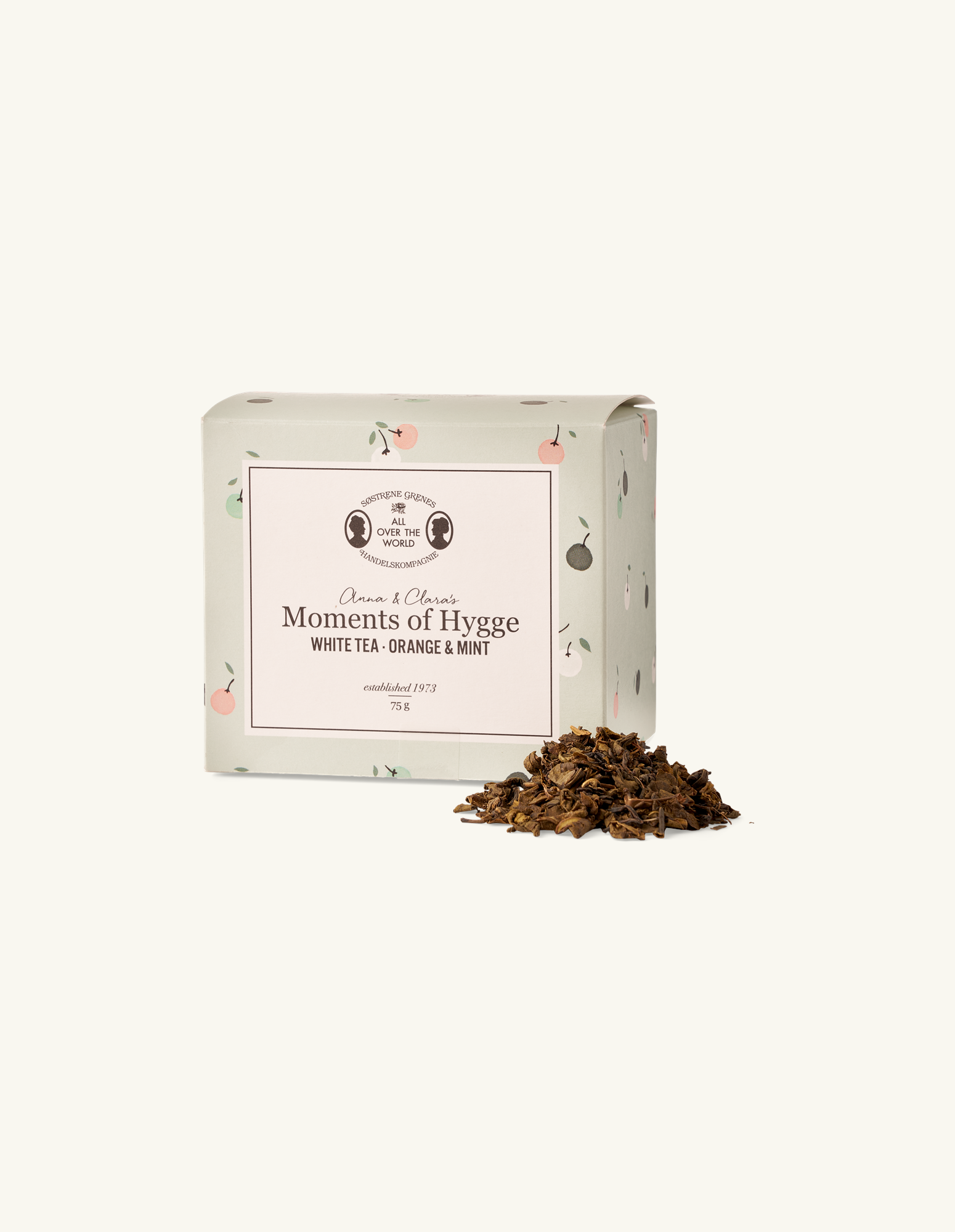 Hyggelige øjeblikke Anna og Claras hvide te med appelsin- og pebermyntesmag er en dejlig og mild te, som indeholder 97% hvid te, samt appelsinaroma og pebermyntearoma. Den kommer i en smuk ... Sjá nánar