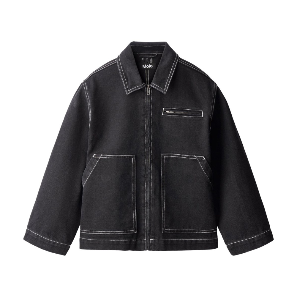 Svartur, víður gallajakki frá Molo. 64% bómull, 33% polyester og 3% viscose.