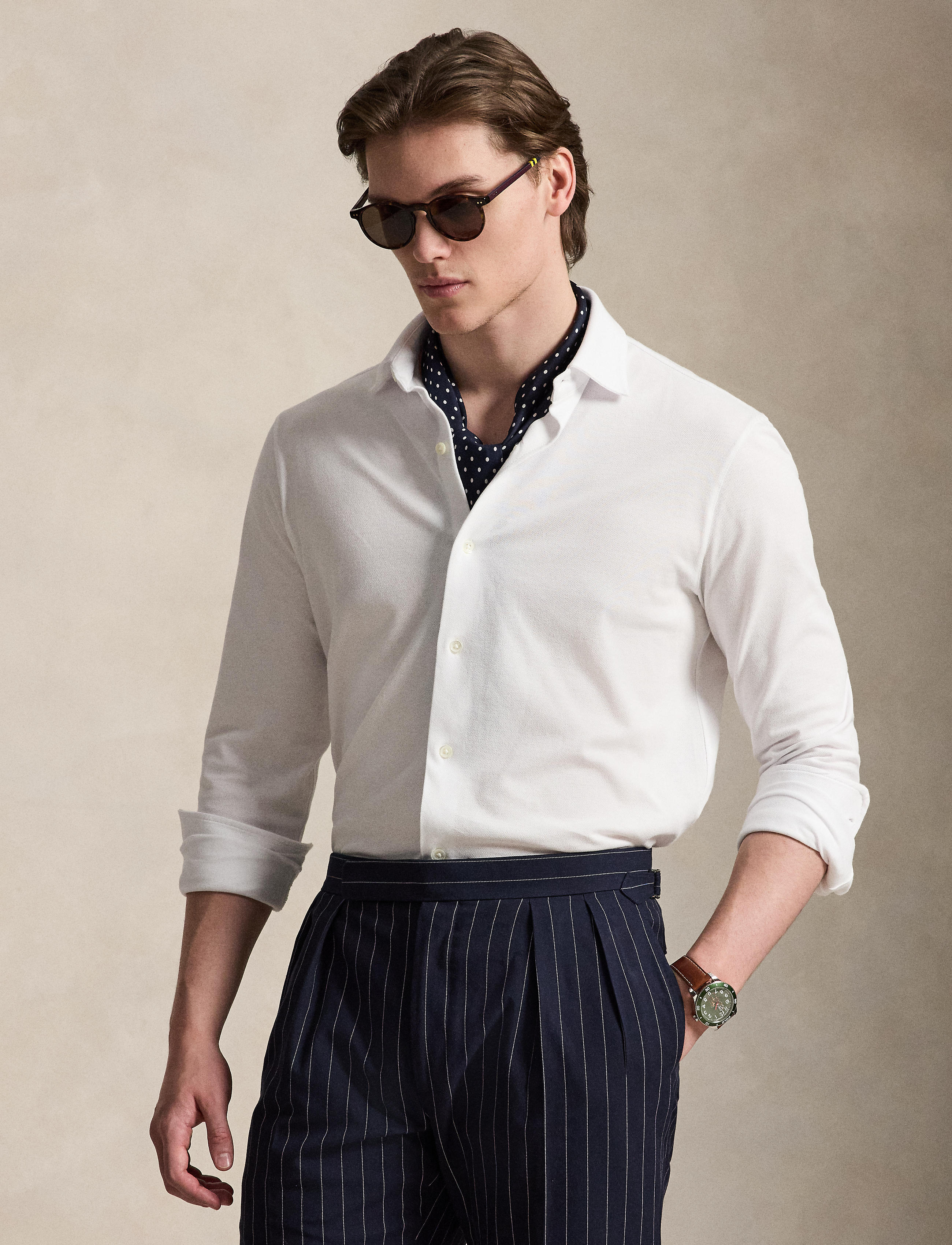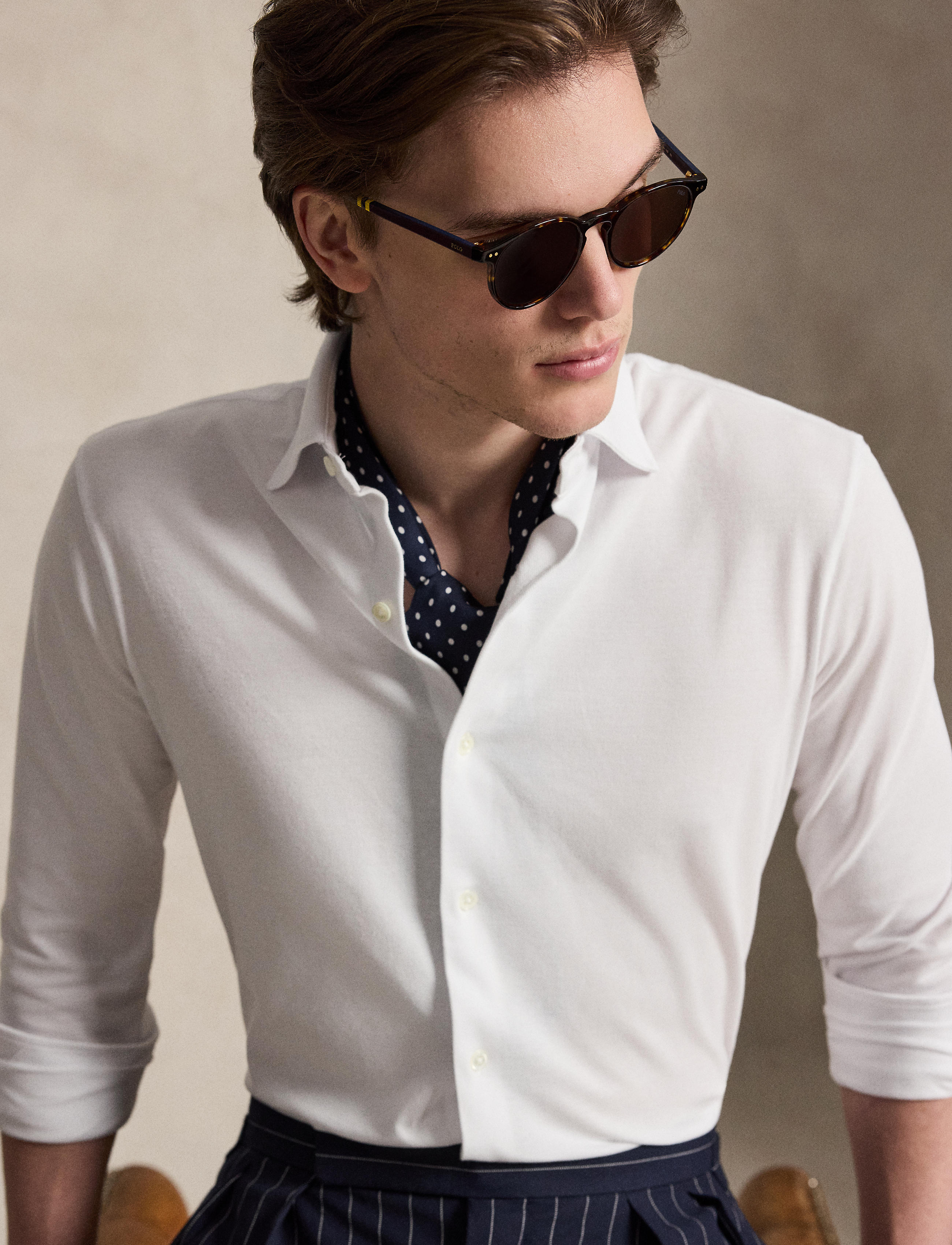 This shirt is crafted with a micro cotton mesh fabric that boasts a lightweight feel. It is finished with refined detailing, including genuine mother-of-pearl buttons and a tonal iteration of ... Sjá nánar