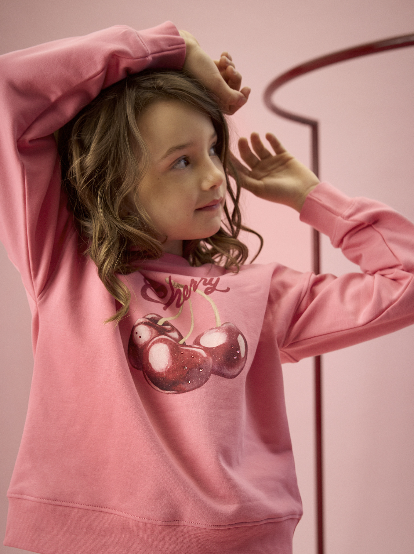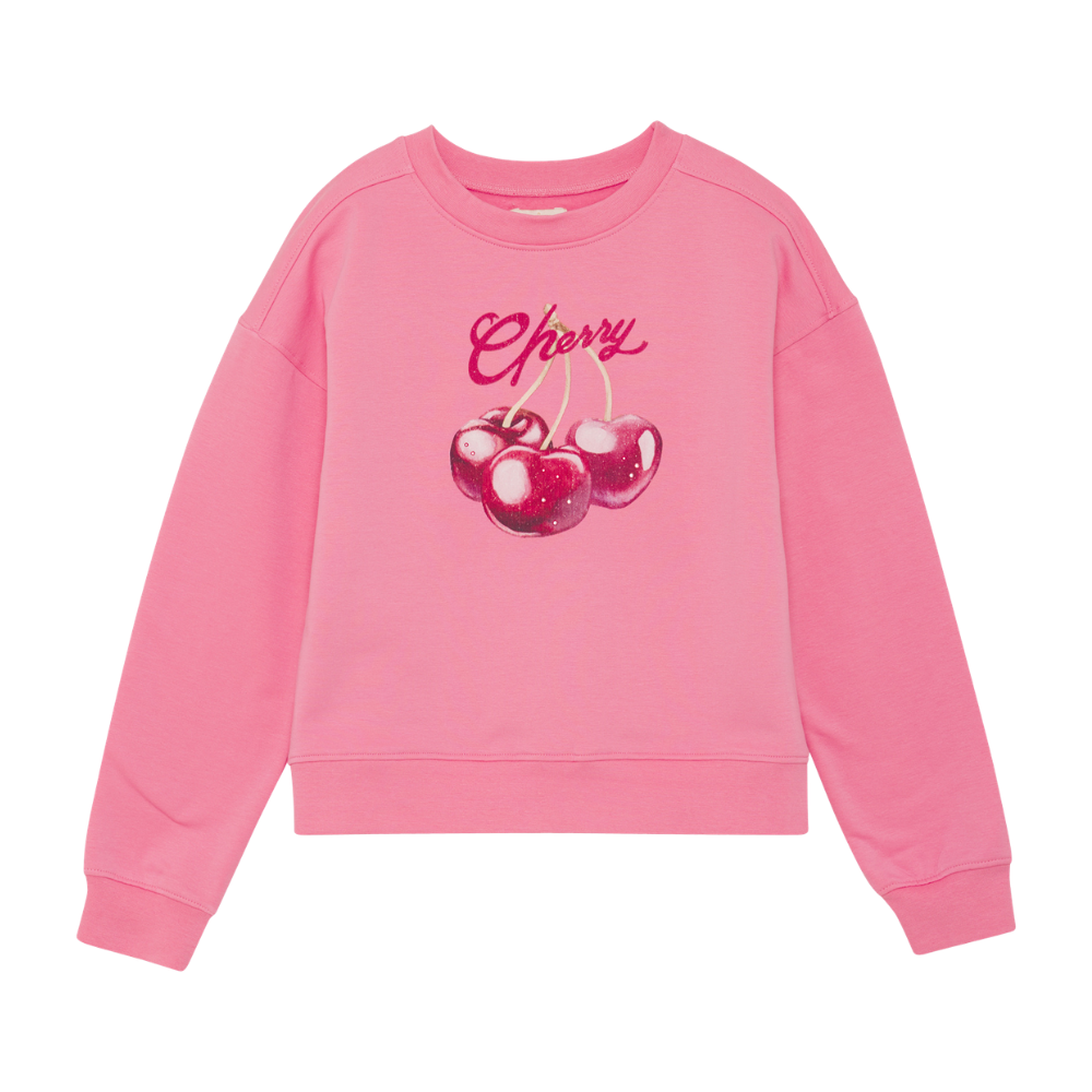 Bleik peysa frá Creamie með mynd að framan. 95% bómull og 5% elastane.