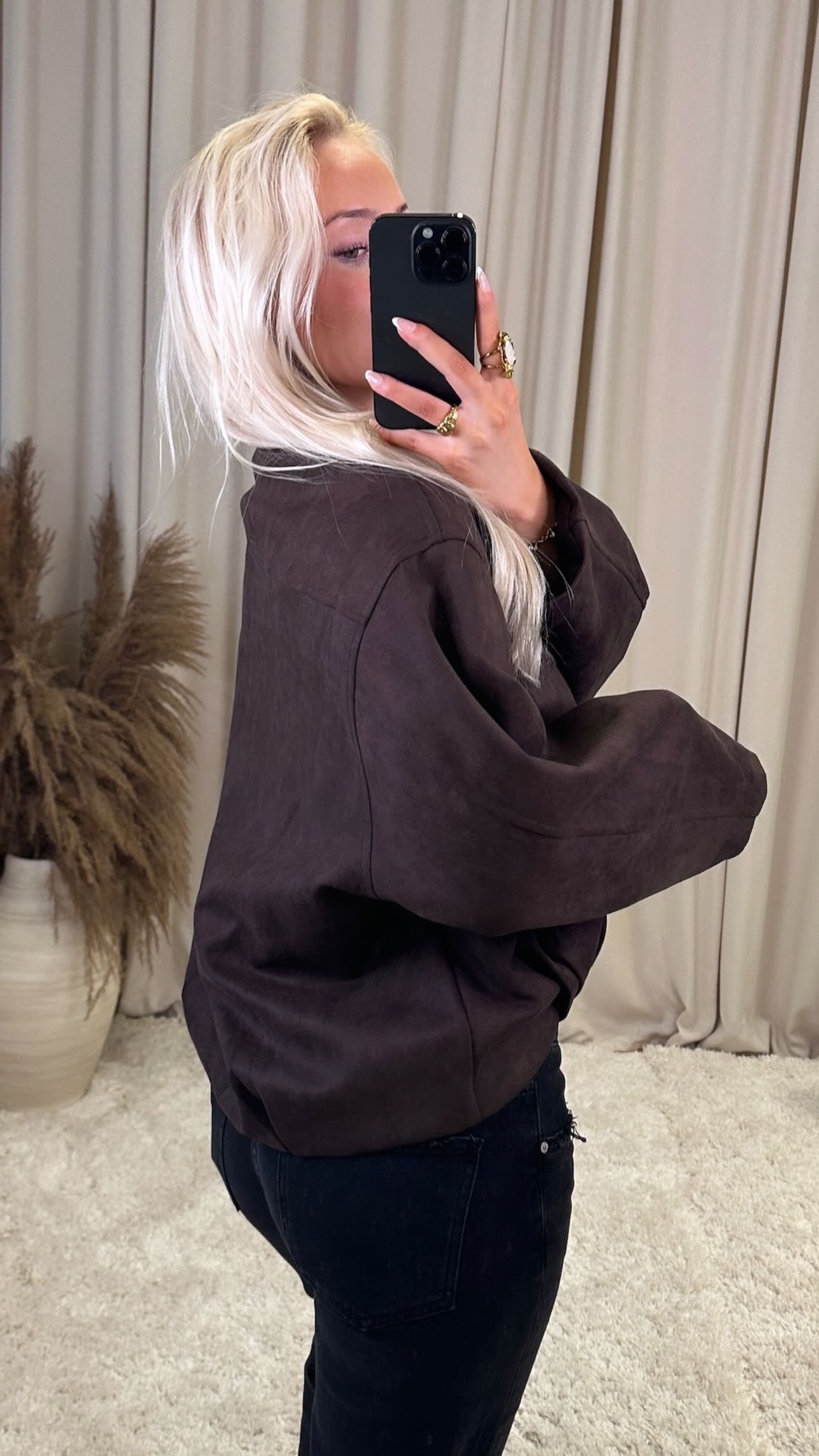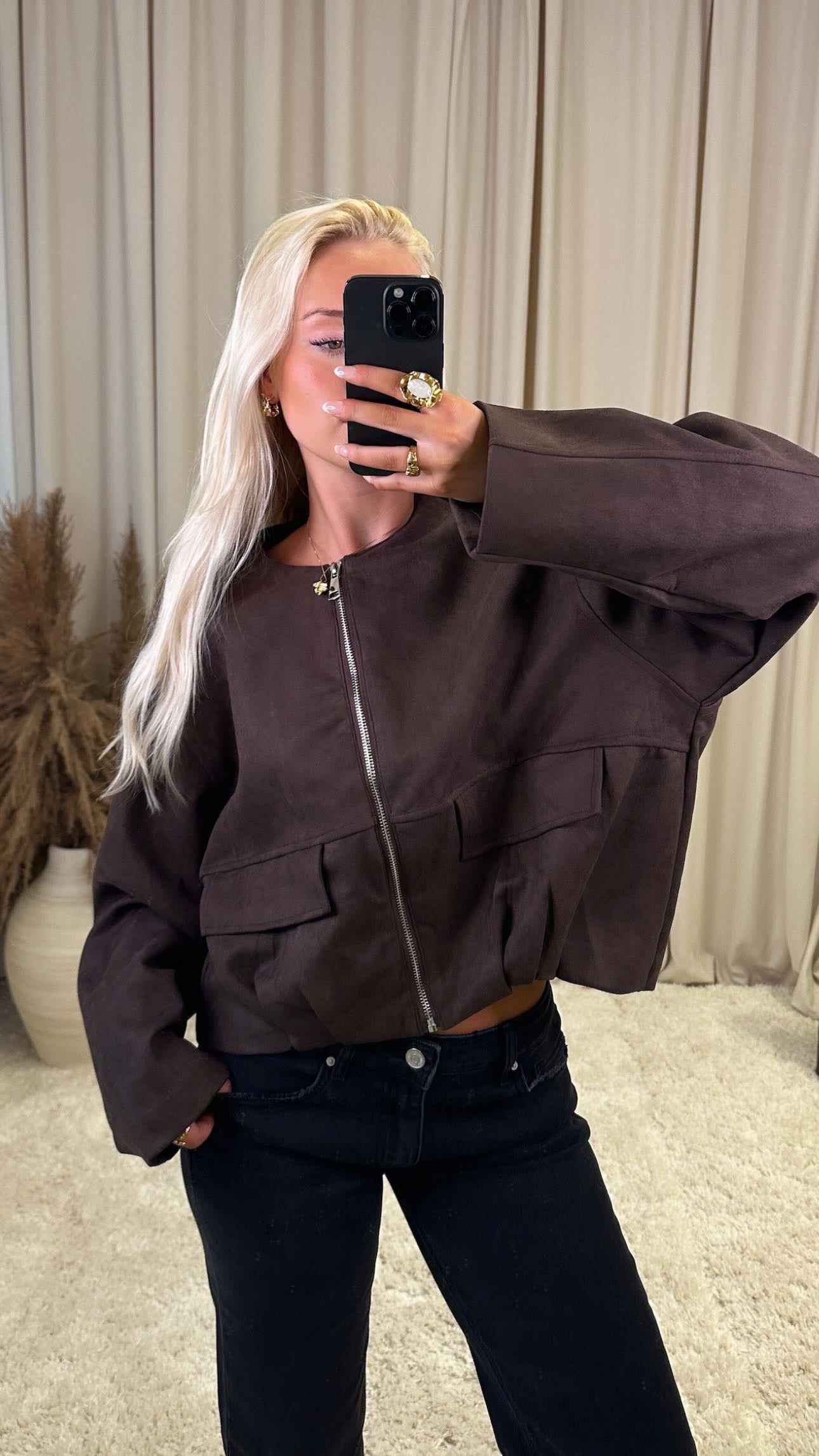 Æðislega fallegur jakki úr hágæða vegan rúskinni, það er engin teygja í efninu modelið er 160cm og er í stærð S