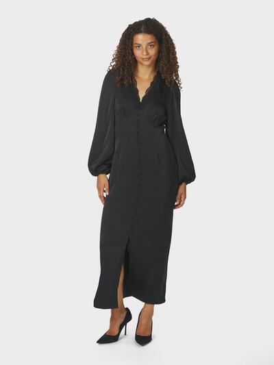 Fallegur síður kjóll frá Neo Noir úr þægilegu satínefni og með blúndusmáatriðum í hálsmálinu.