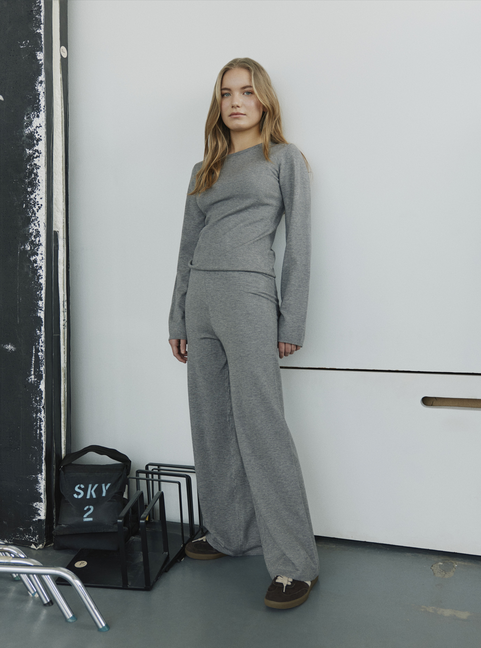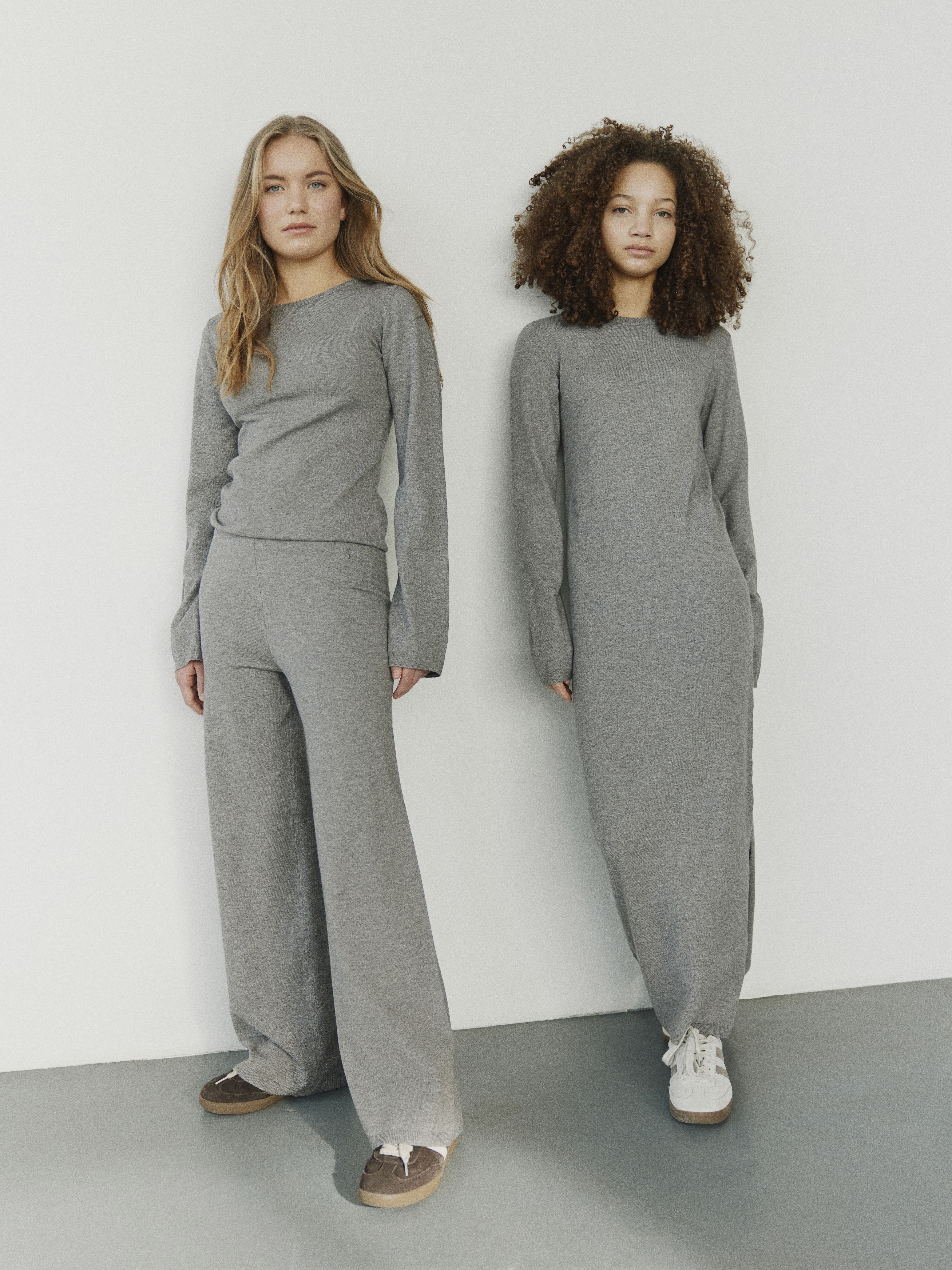 Mjúkar, gráar buxur frá Sofie Schnoor með víðum skálmum. 50% viscose, 30% polyester og 20% polyamide.