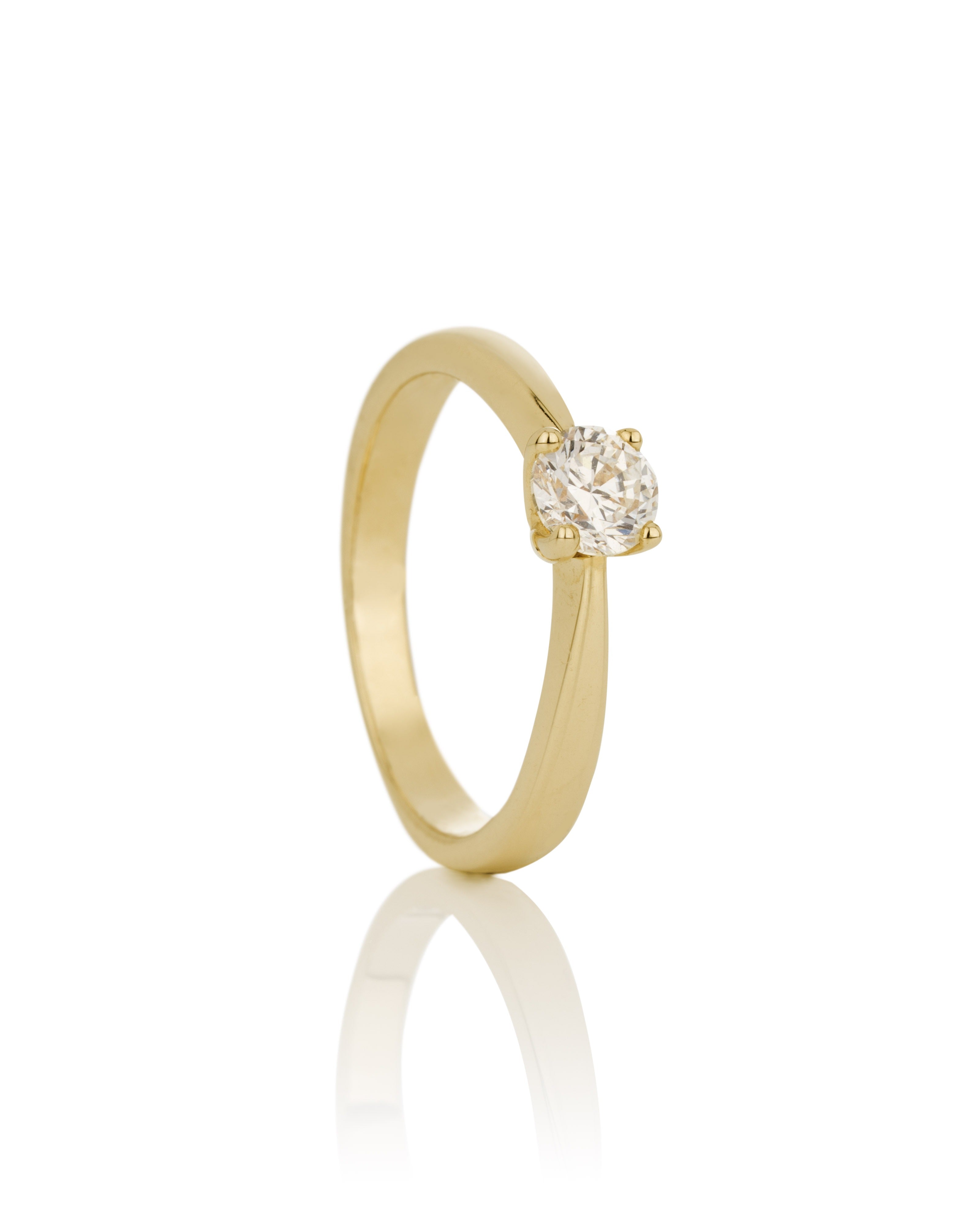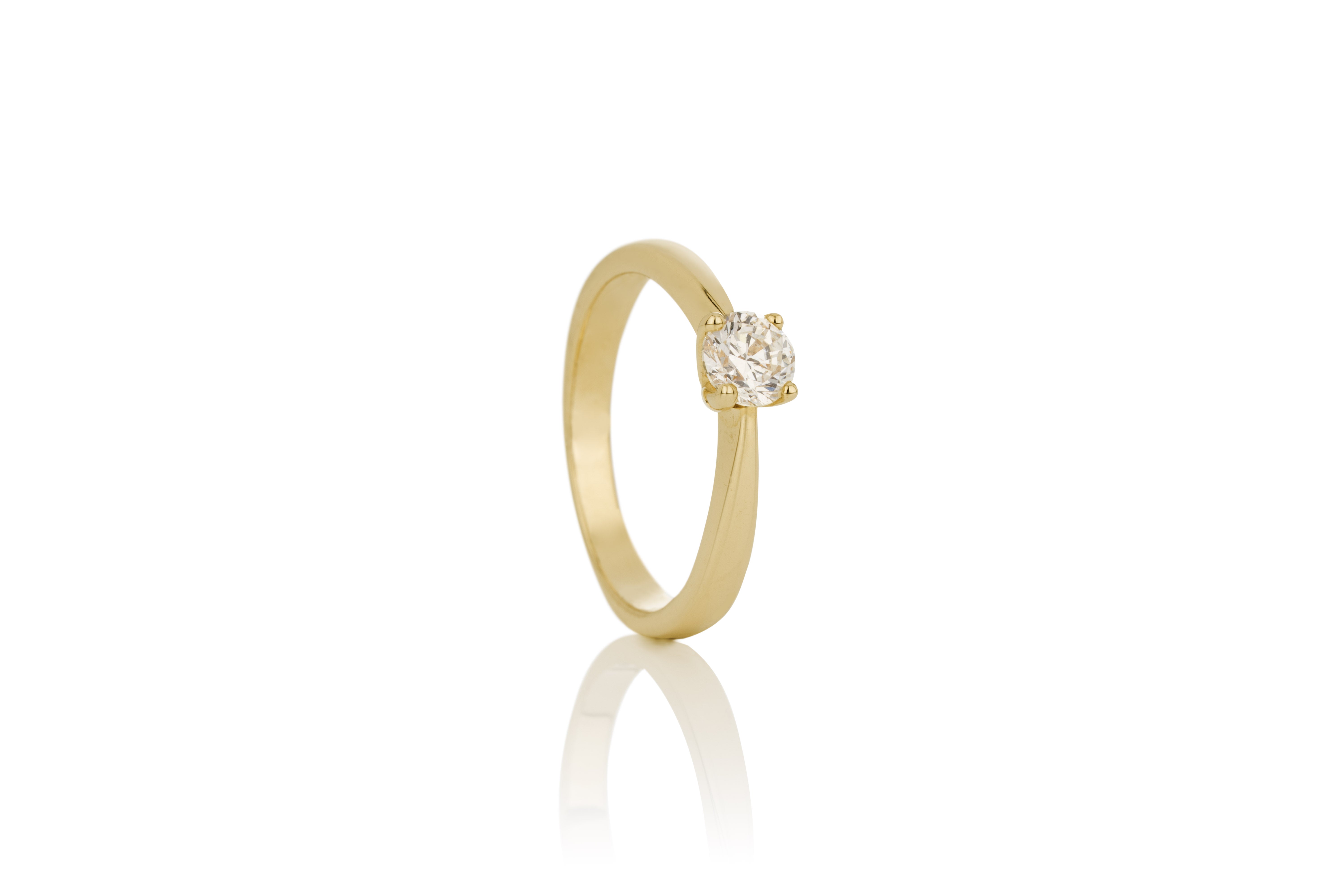 14 kt gull Demantshringur  Vr: 110 114BR5 Fallegur og klassískur demantshringur með 4 klóm og litlu hjarta inní baug.  Efni: Gull Karöt: 14 Yfirborð: Pólerað   Steinn: ... Sjá nánar
