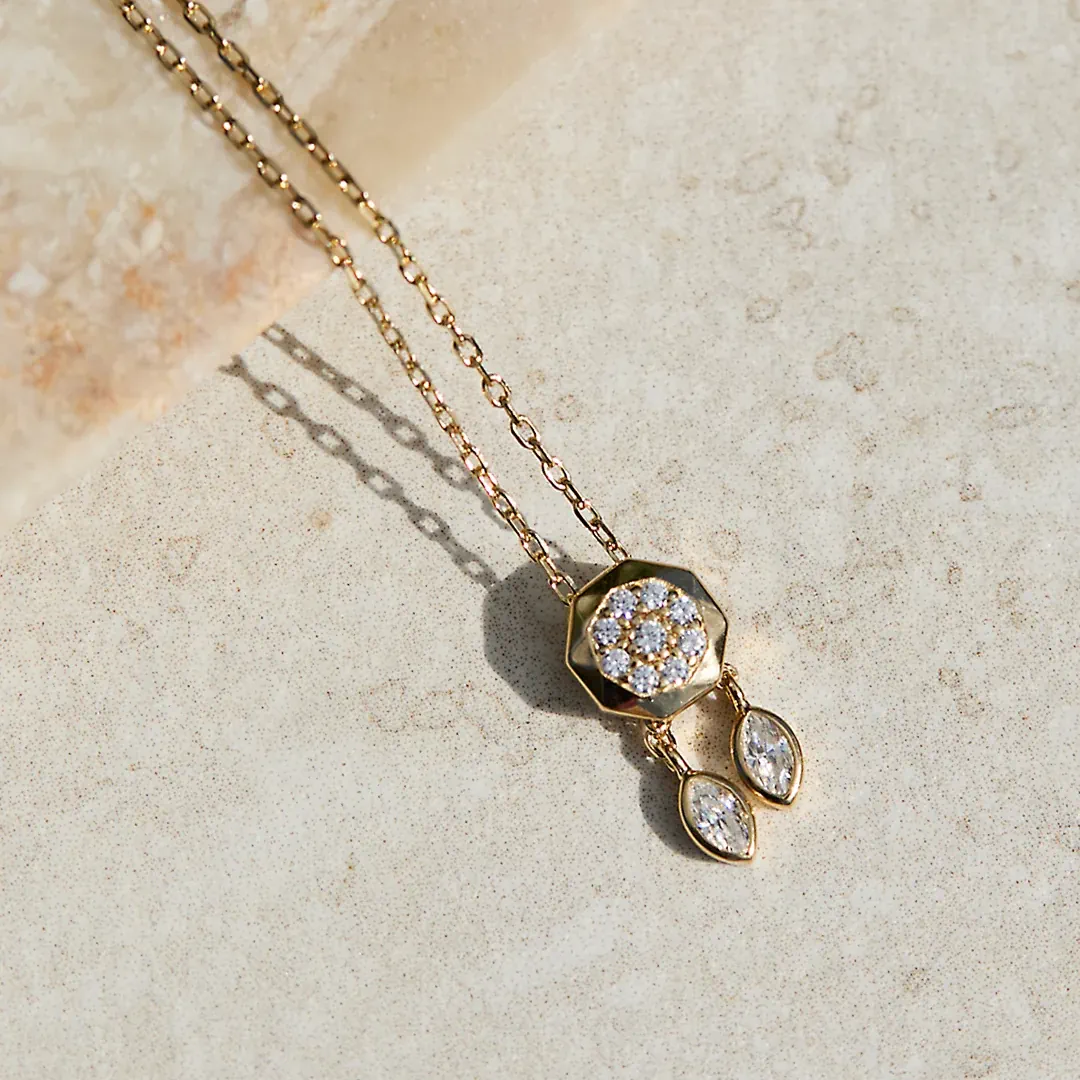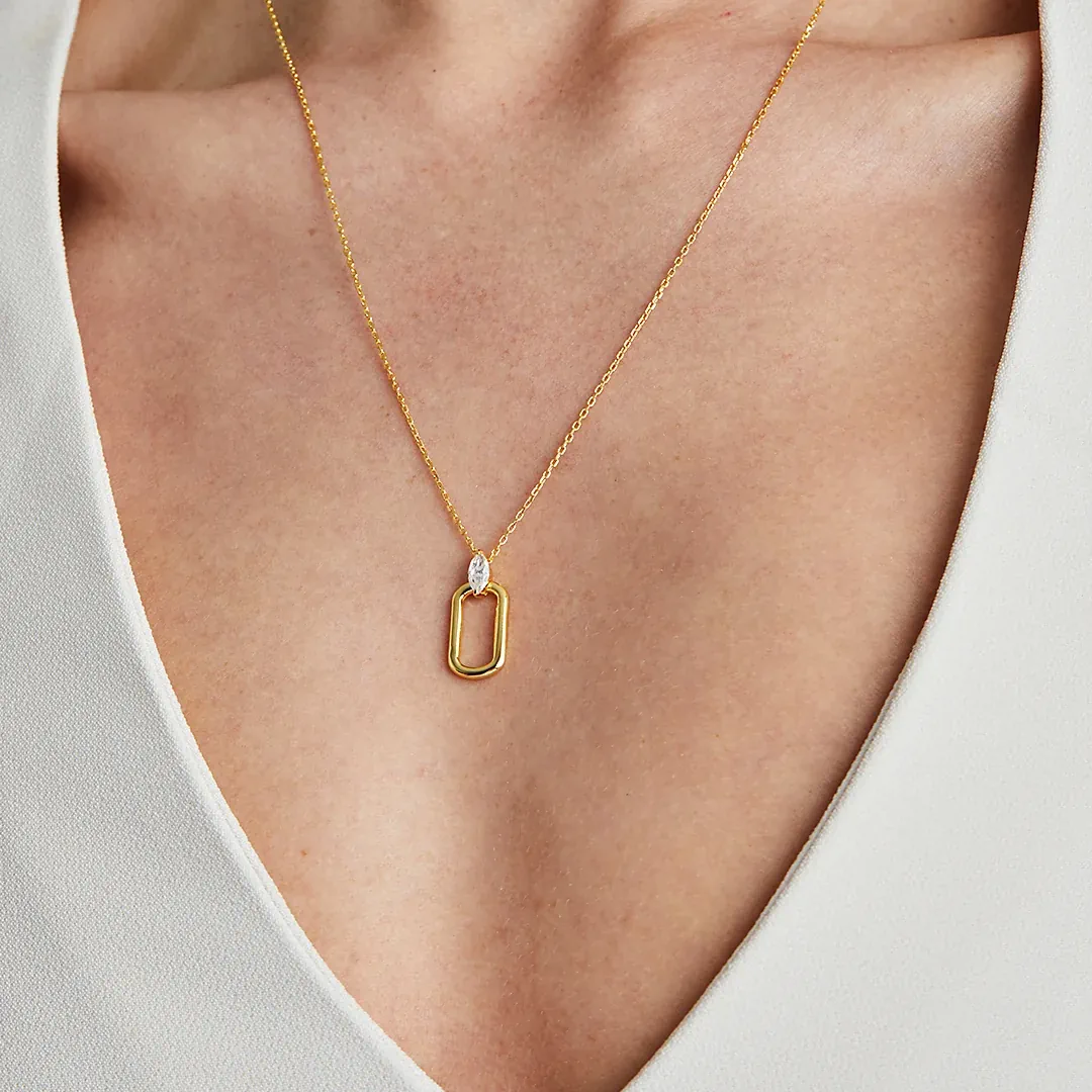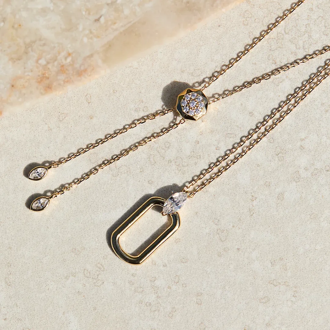 Hálsmenið býður upp á stillanlega lengd með fallegri rennilæsingu, sem er hluti af útlitinu. Notaðu það eitt og sér eða paraðu með öðrum hálsmenum. Efni keðju: Gullhjúpað silfur Efni mens: ... Sjá nánar