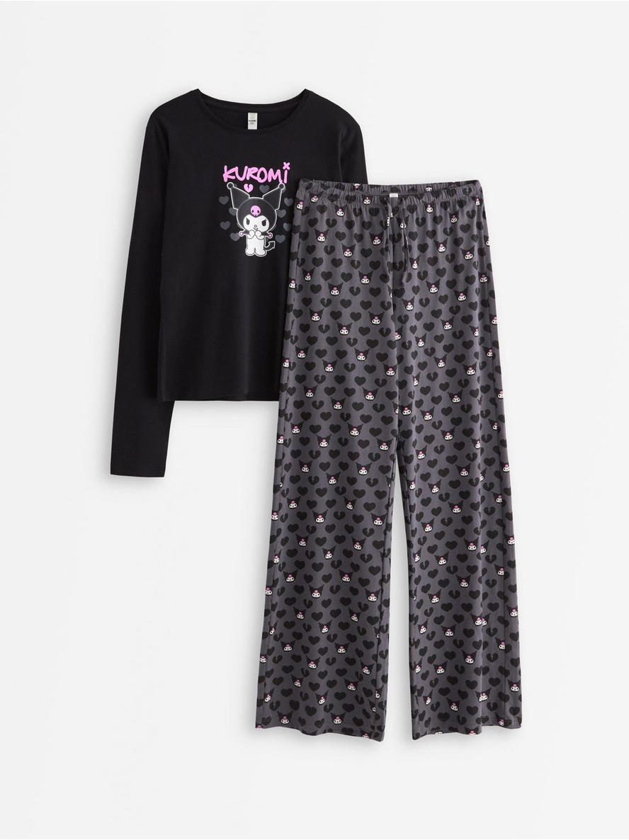 Comfortable pyjama set with matching top and trousers. Long sleeves Elastic waist with a drawstring Contains 80% organic cotton Contains 20% recycled cotton 100% bómull