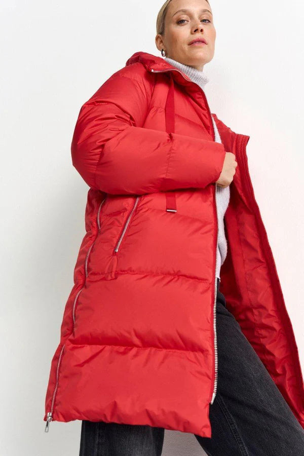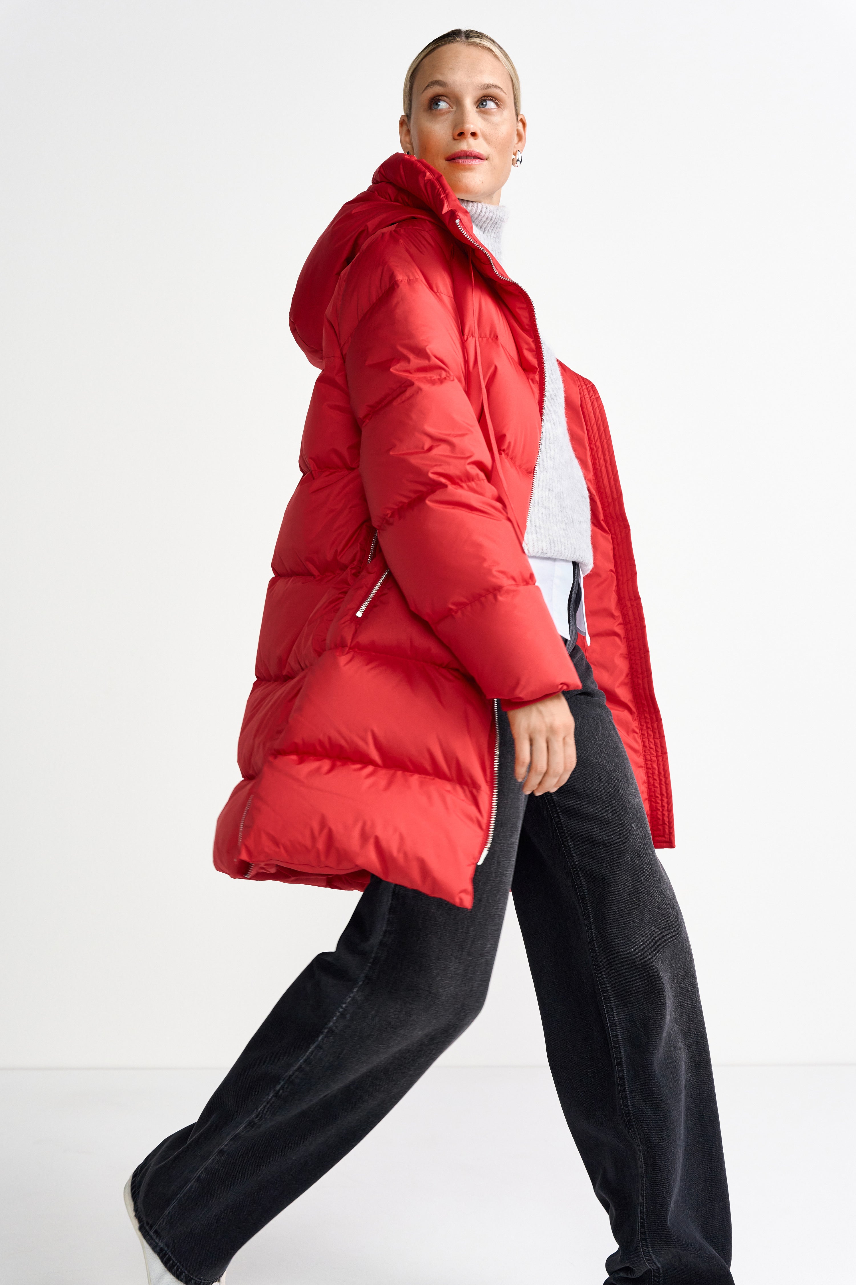 Hlý og mjúk dúnúlpa með hettu.  Rennilás á hliðum fyrir aukin hreyfanleika 80% Dúnn og 20% Fjaðrir 100% Polyester