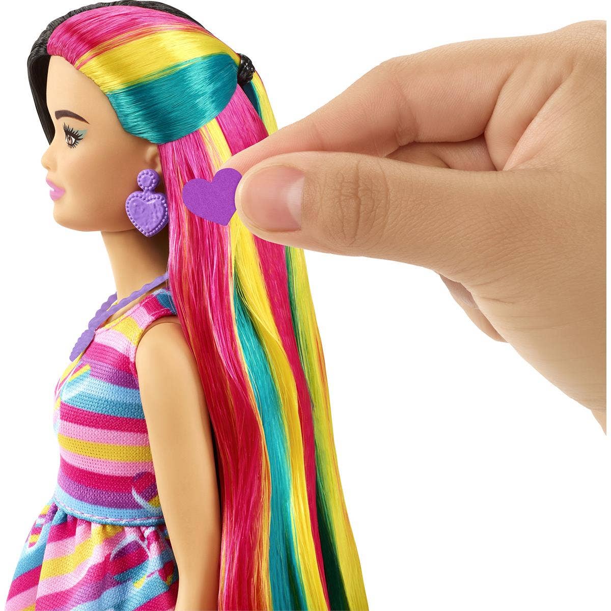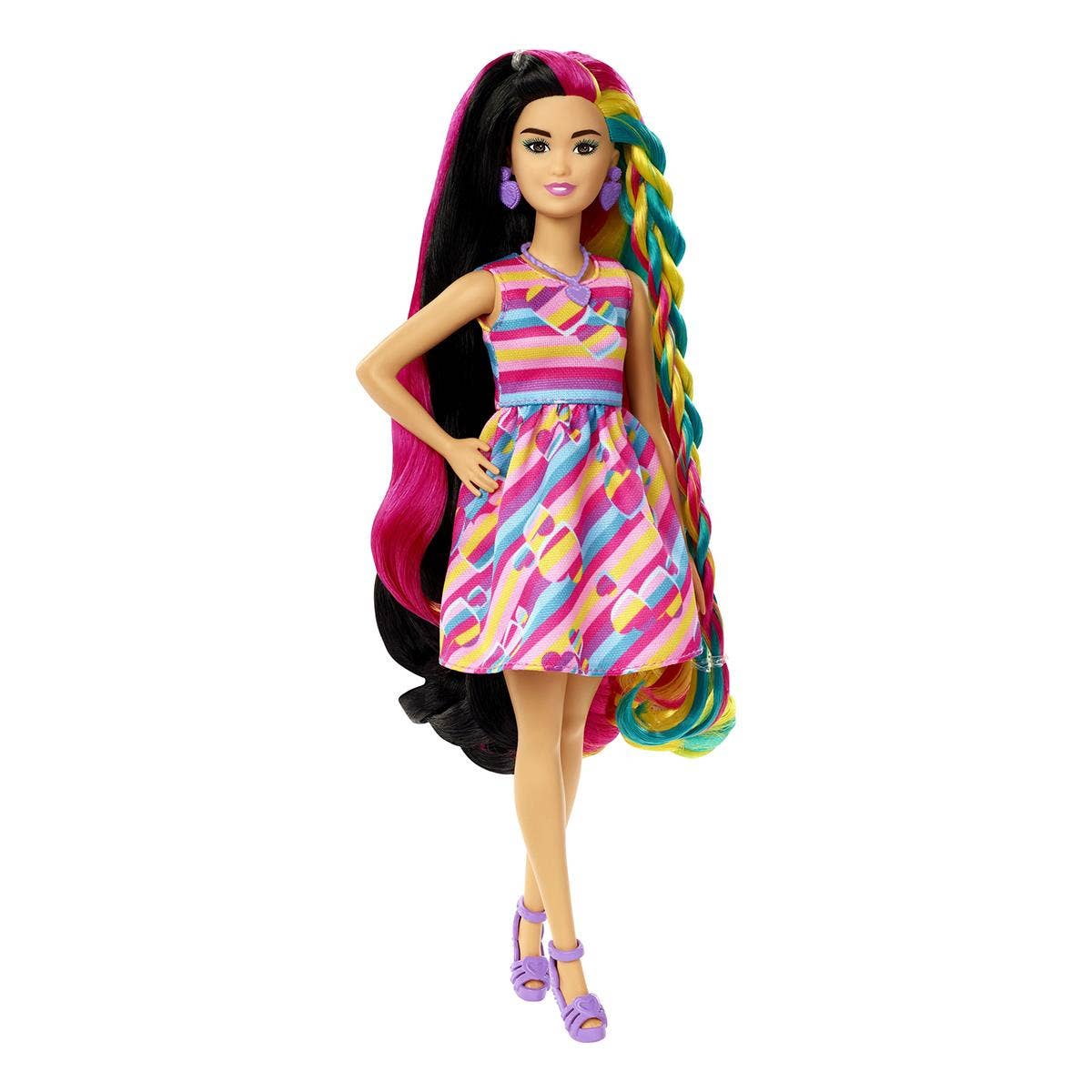 Flott Barbie dúkka með sítt marglitað hár.