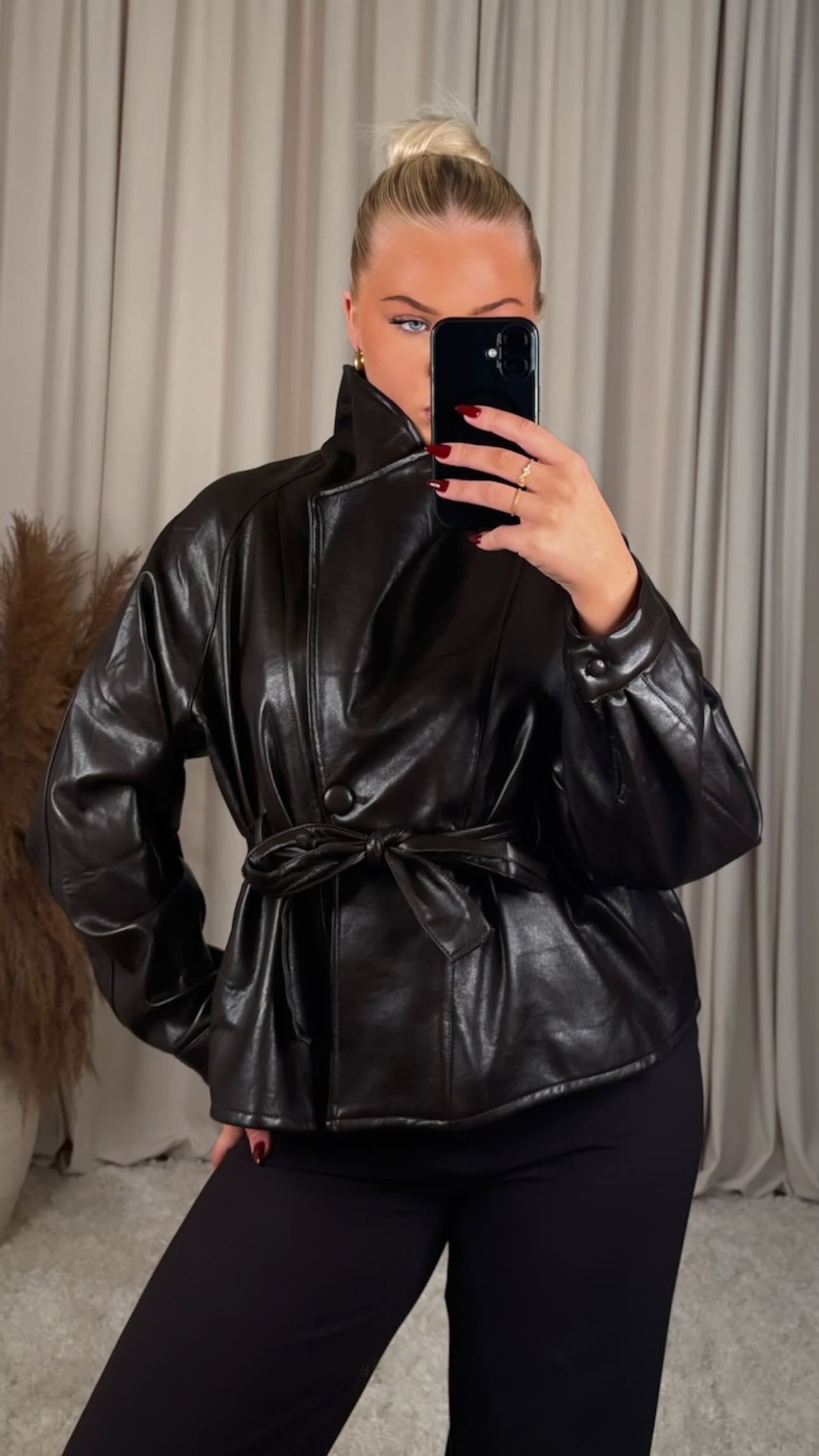 Sjúklega flottur jakkinur hagæða vegan leðri, jakkinn er one size og passar á S-M modelið er 168cm og er í stærð S