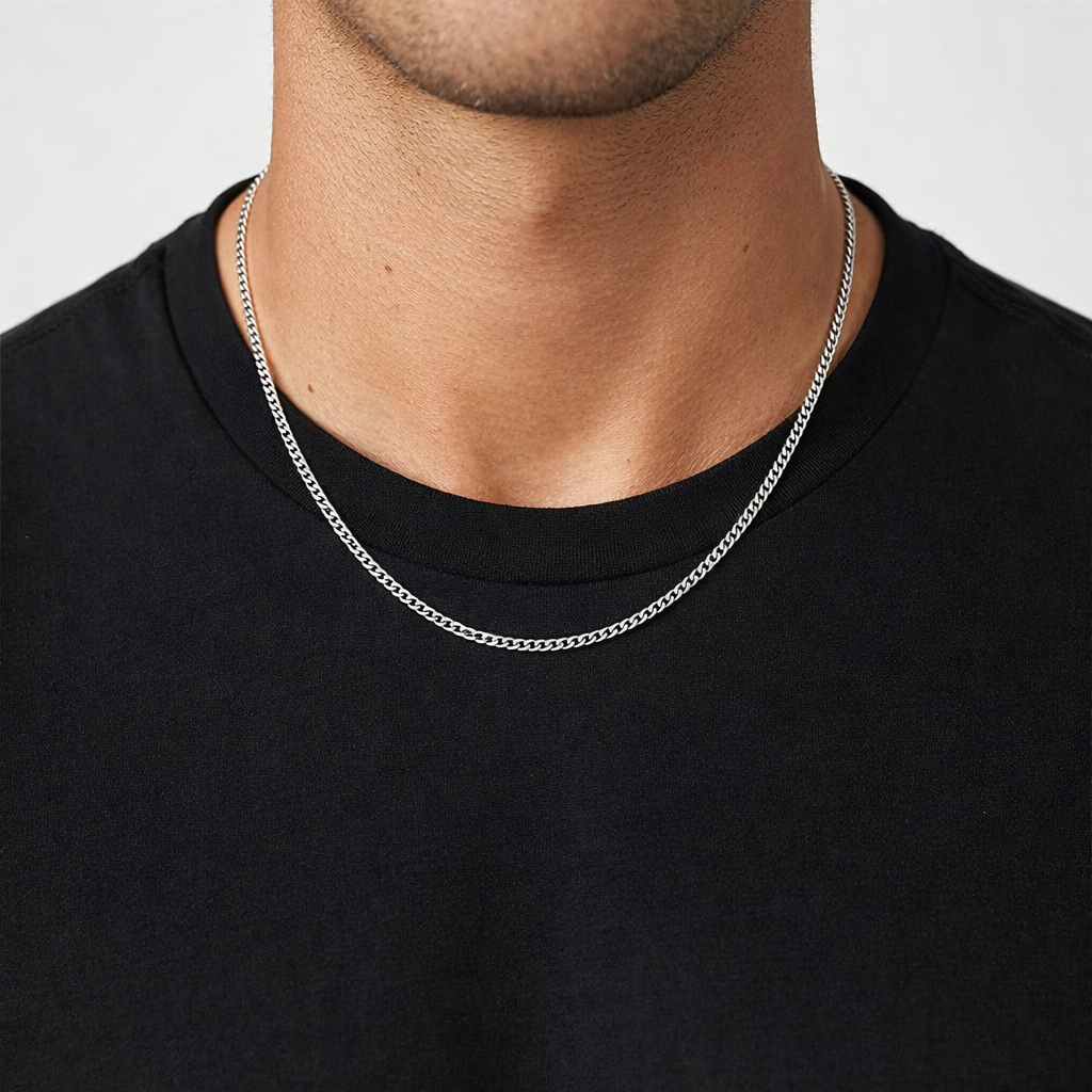 Falleg 3mm Cuban keðja úr ródíum húðuðu silfri