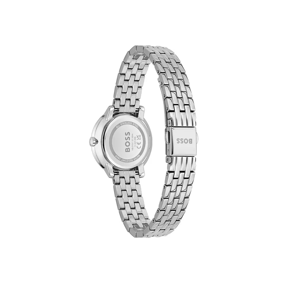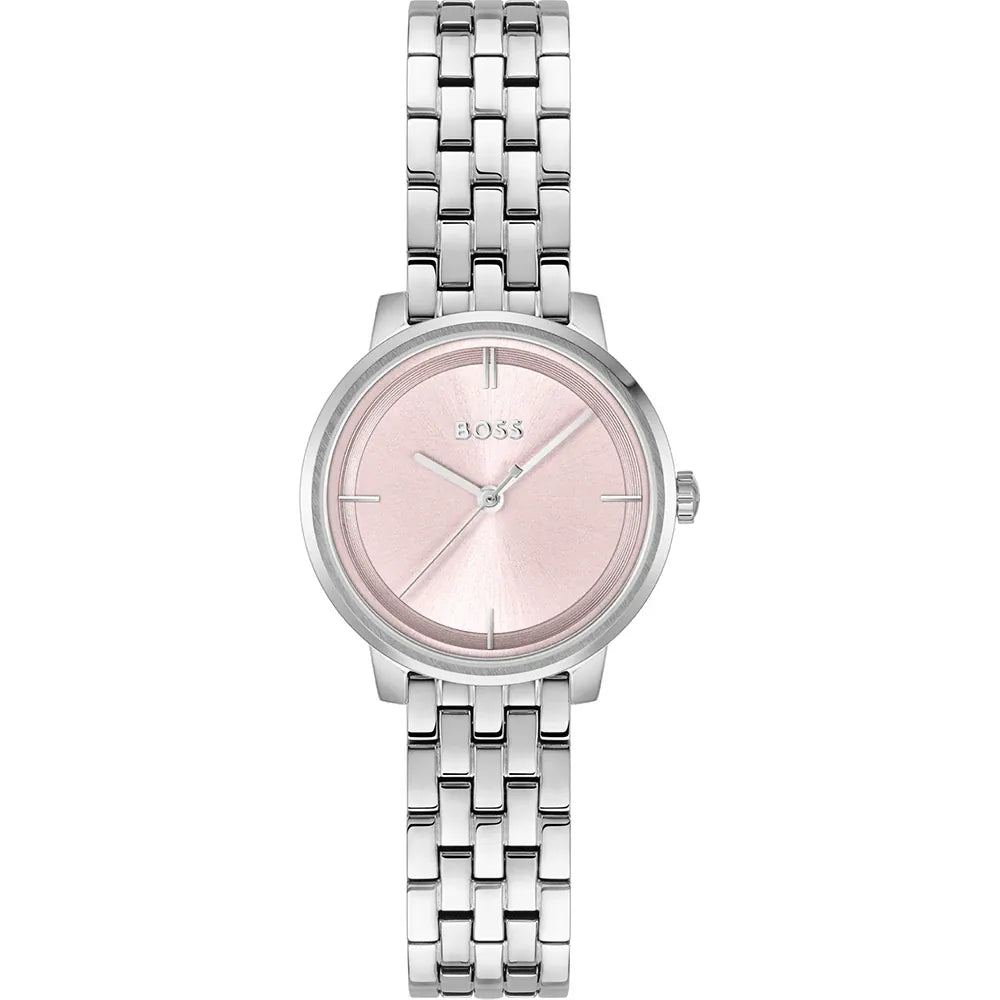 Hugo Boss Lucia Vörunr:1502819 Fallegt dömuúr frá Hugo Boss. Gangverk:Rafhlaða/Quartz Stærð:28mm Úrkassi:Stál  Keðja/ól:Stál Skífa:Bleik Gler:Hert gler Vatnsvörn:30m Dagatal:Nei   ... Sjá nánar