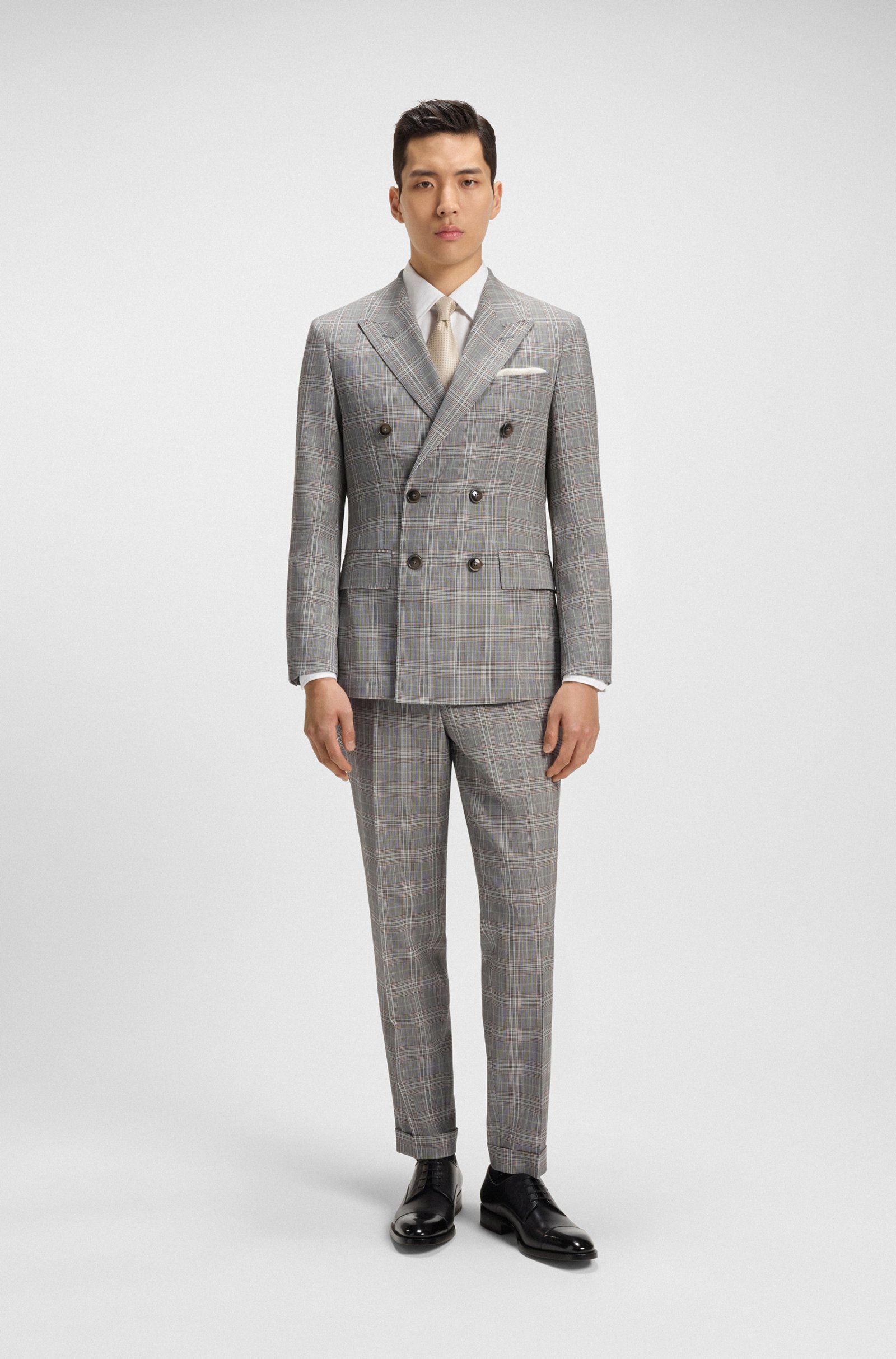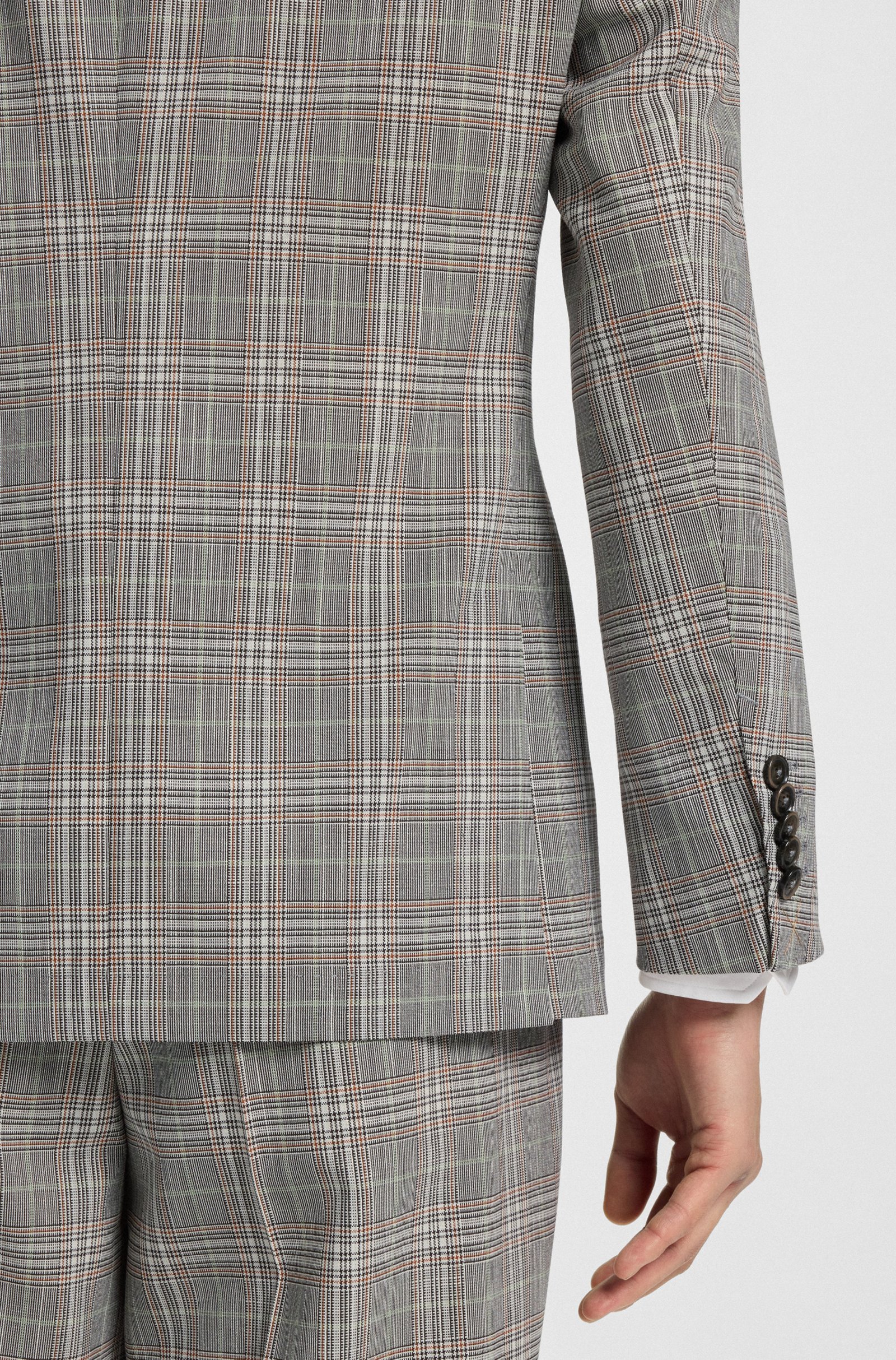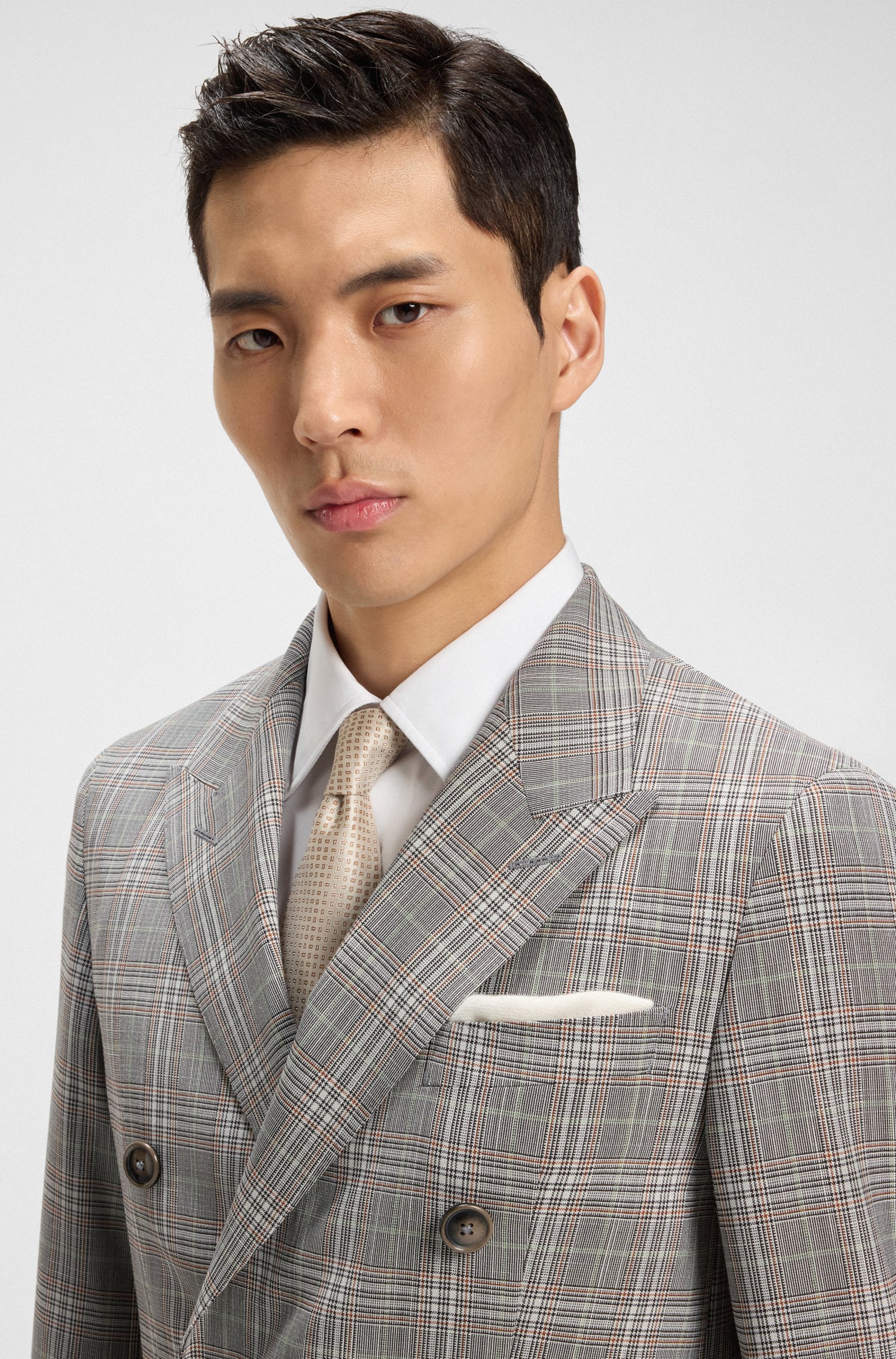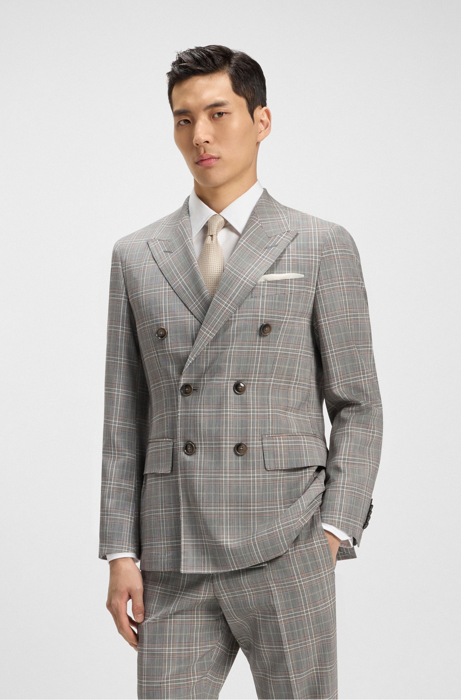 Refreshing the classic Prince of Wales check, this BOSS Menswear jacket is a formal must. Tailored slim-fit suit in a wool-silk blend Slim fit Partially lined Fit back length: 73 cm (29 ... Sjá nánar