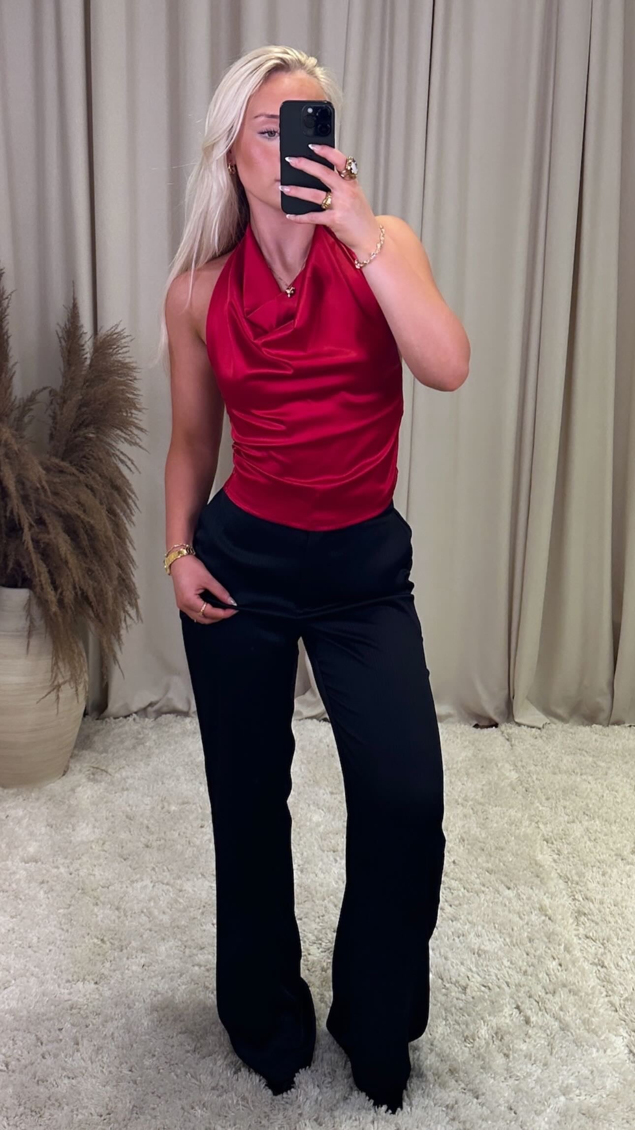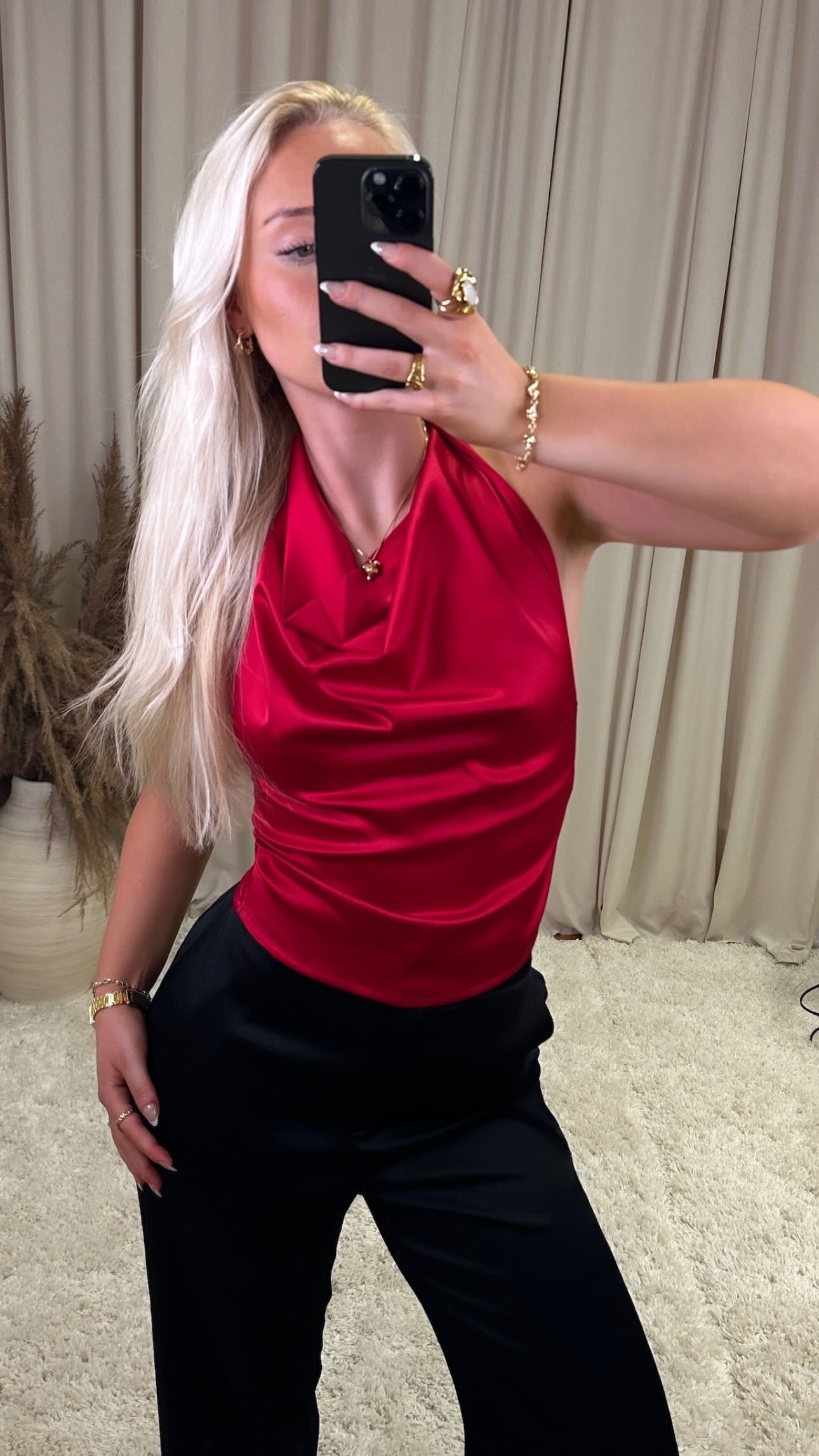 Æðislega flottur bolur úr mjög mjúku satín efni, það er engin teygja í efninu og er opin í bakið modelið er 160cm og er í stærð S