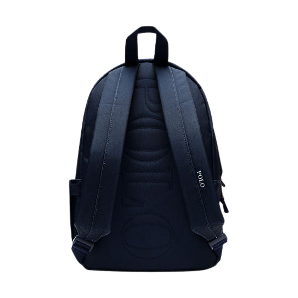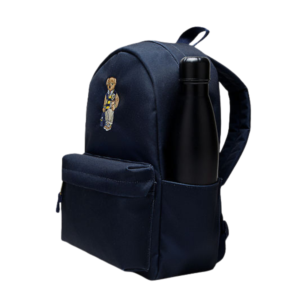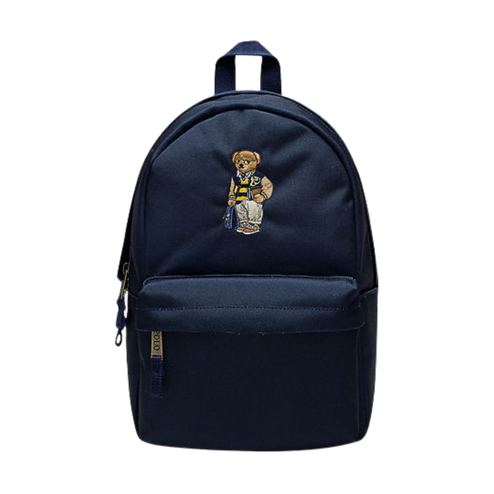 Lítill, dökk blár bakpoki frá Polo Ralph Lauren með bangsamynd að framan. Taskan opnast með tveimur rennilásum og samanstendur af einu stóru hólfi, litlu hólfi að fraamn og á hliðum. Bakpokinn ... Sjá nánar