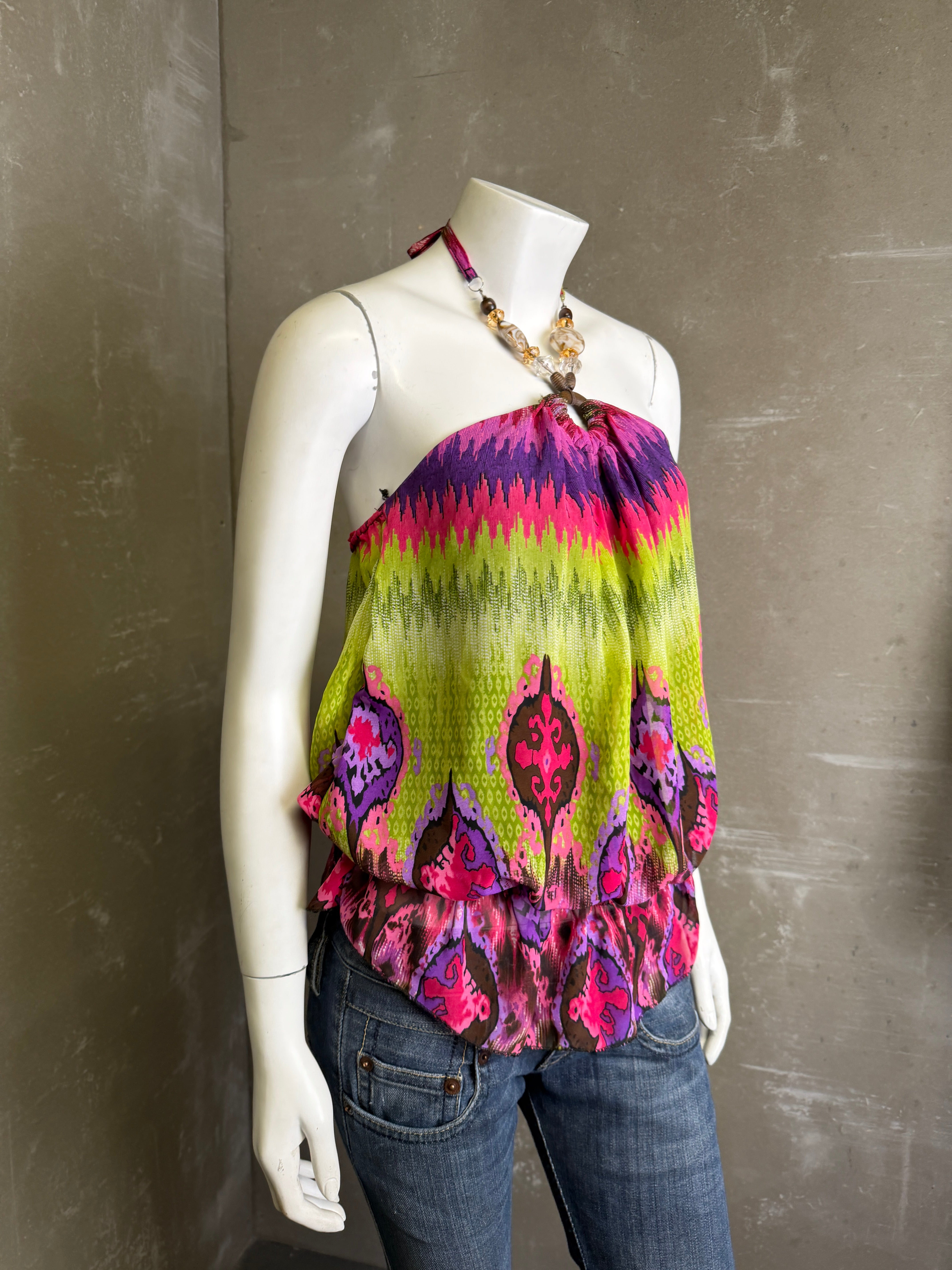 Fittar  S-M Gína er 170 hæð í stærð S-M Vintage flíkur geta sýnt ummerki um notkun  Vara einungis fáanleg í netverslun