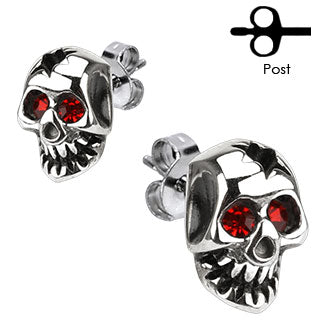 Hauskúpa með rauðum demants augum. Lokkurinn er úr 316L Surgical Steel og er PVD húðaður. Pinninn er 0.8mm þykkur. A.T.H. Lokkarnir seljast í pari.