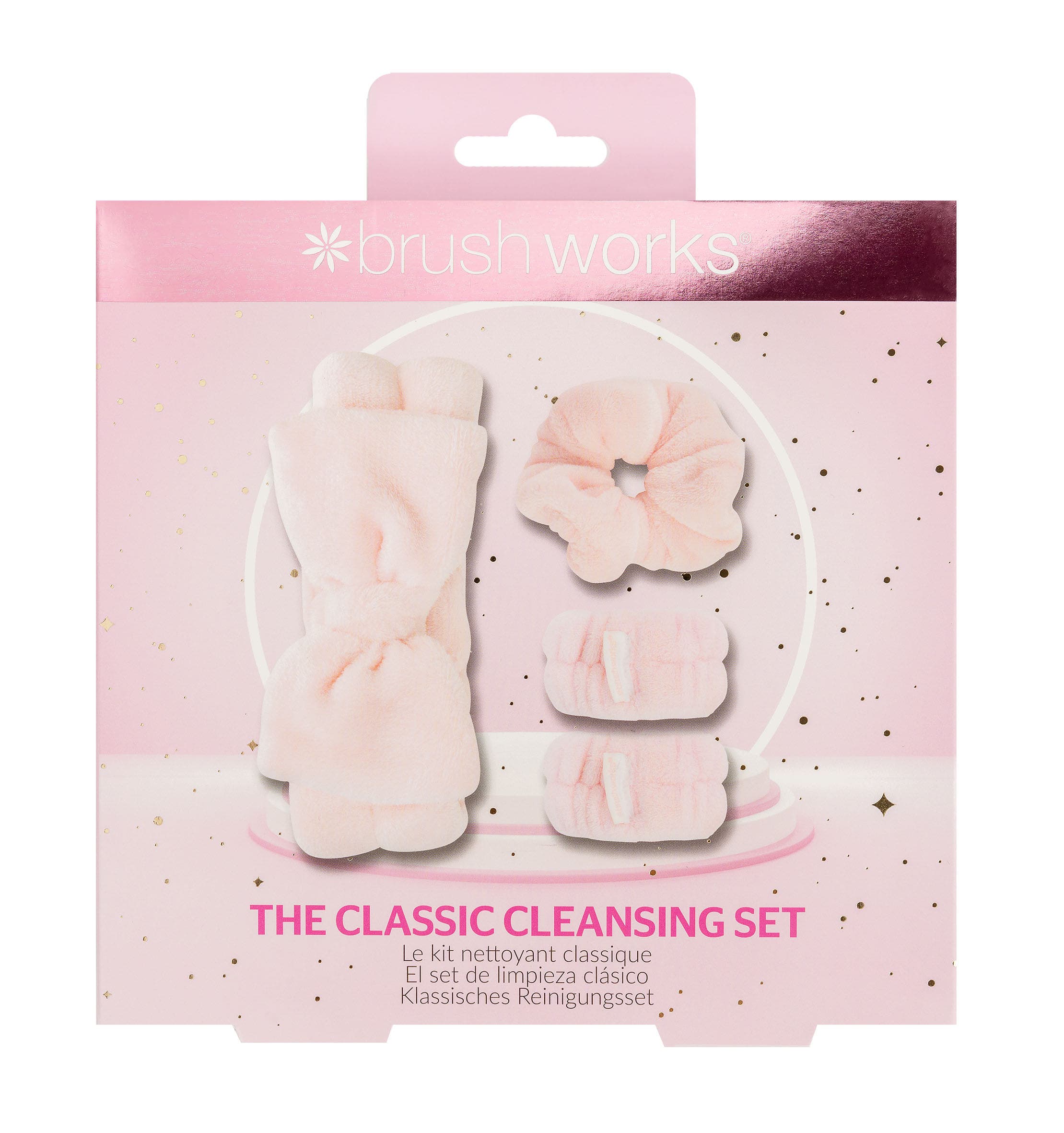 Brushworks The Classic Cleansing set – Lúxus sett með mjúku hárbandi fyrir snyrtirútínu eða förðun, örþunnri scrunchie sem heldur hárinu mildilega án togstreitu, og tveimur úlniðsböndum sem ... Sjá nánar