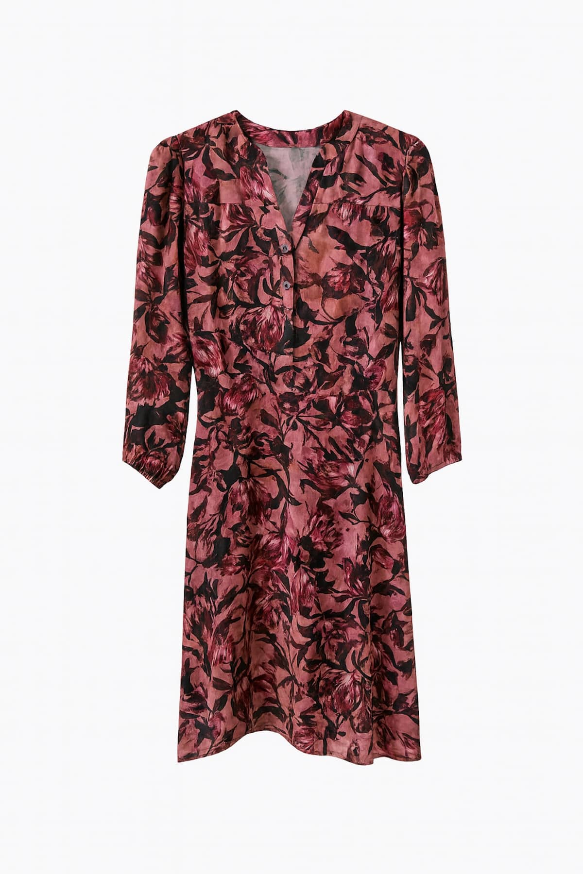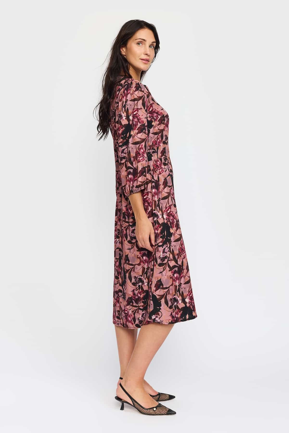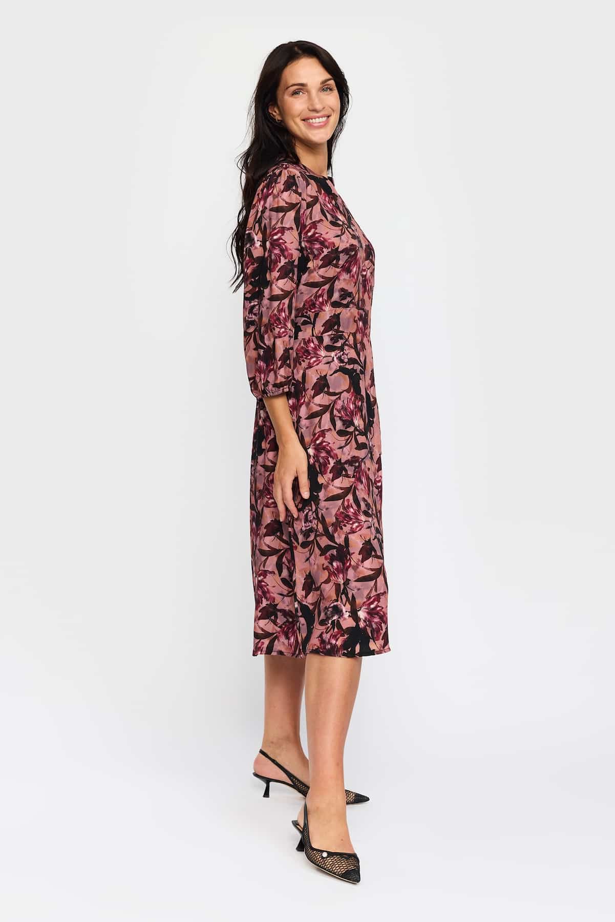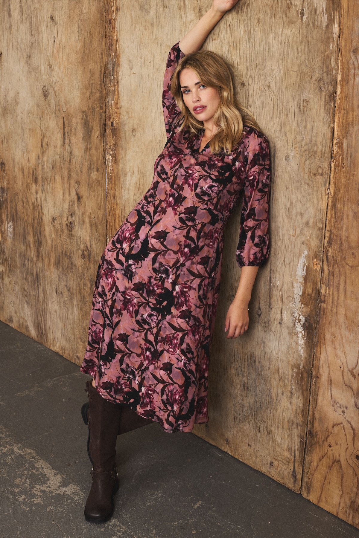 Léttur og fallegur kjóll í haustlitunum frá 2-biz.Hann er með V-hálsmáli og kvartermum.