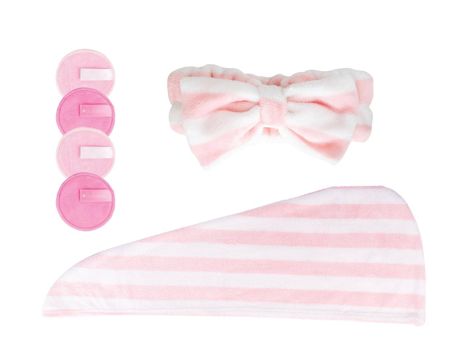 Brushworks Luxury facial cleansing Brush & Headband – Lúxus sett fyrir snyrtirútínuna með mjúku hárhandklæði sem dregur úr flóka, hárbandi til að halda hárinu frá andliti og örþunnum ... Sjá nánar