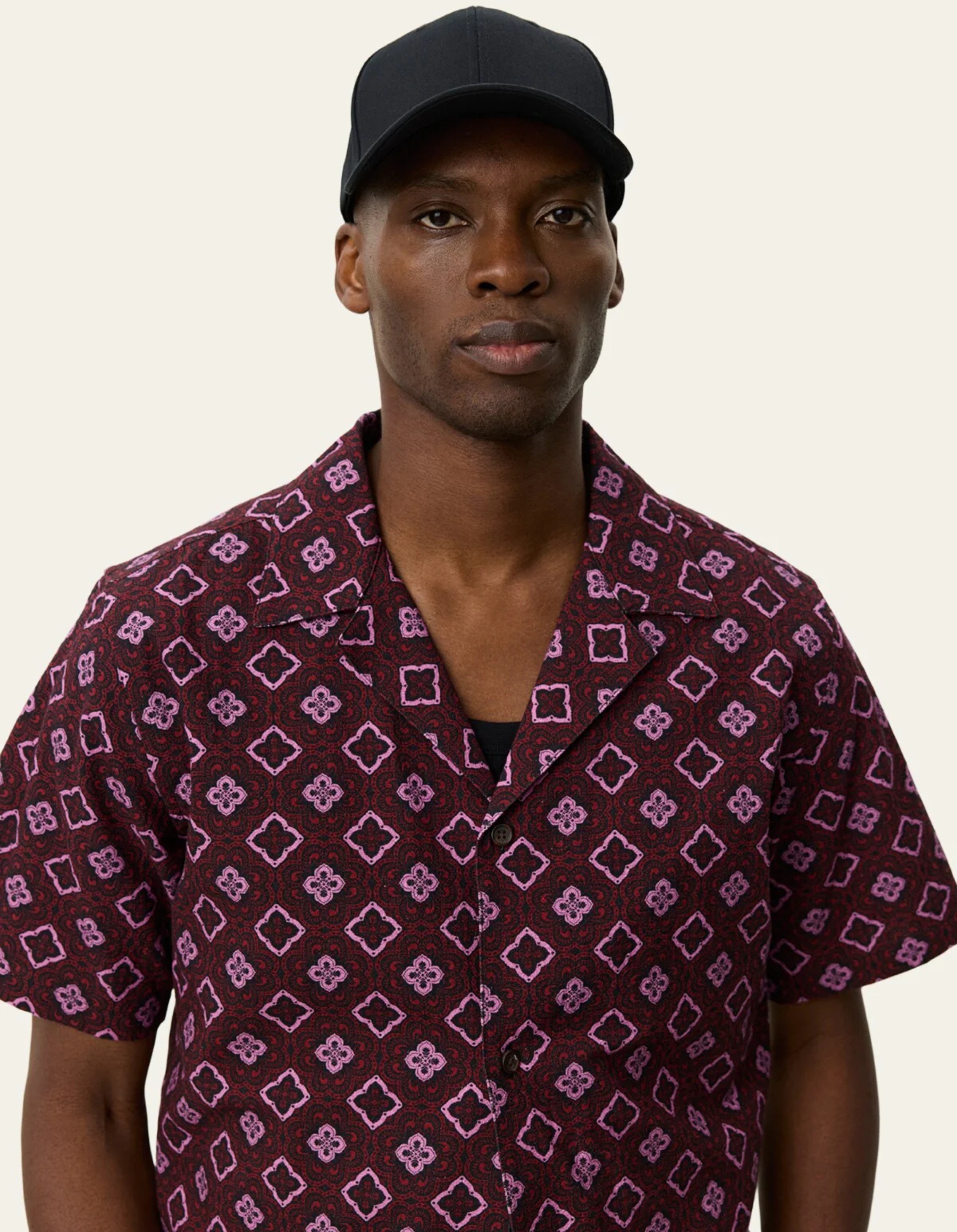 A lightweight short sleeve shirt in structured cotton, printed all over with an arabesque-inspired pattern. Finished with a relaxed drape and a clean open collar. 100% Cotton (Organic) ... Sjá nánar