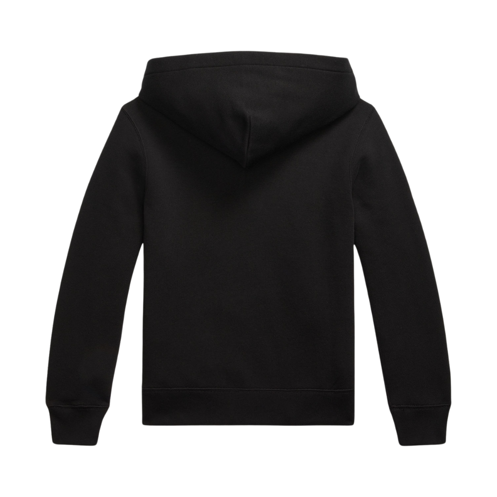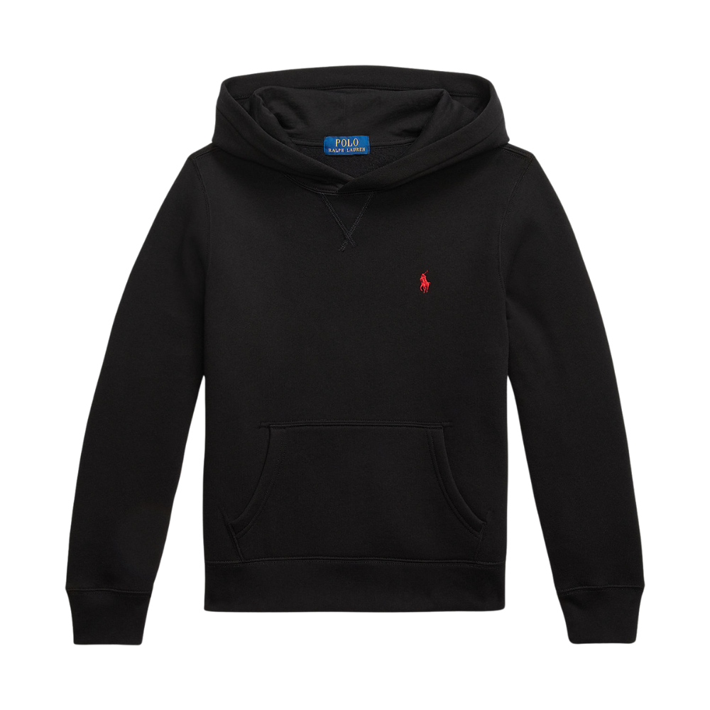 Dökk blá hettupeysa frá Polo Ralph Lauren með litlu útsaumuðu logo vinstra megin að framan og stórum opnum vasa. 84% bómull og 16% polyester.