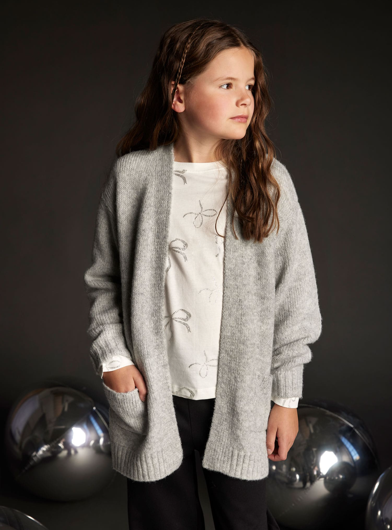 Síð grá peysa frá Cremie. 92% polyester, 5% ull og 3% elastane.