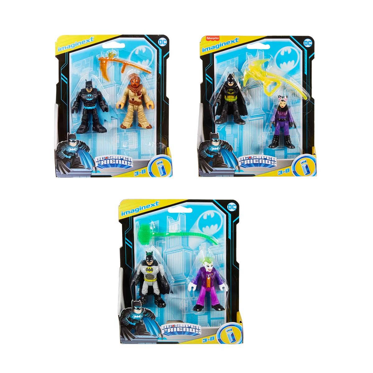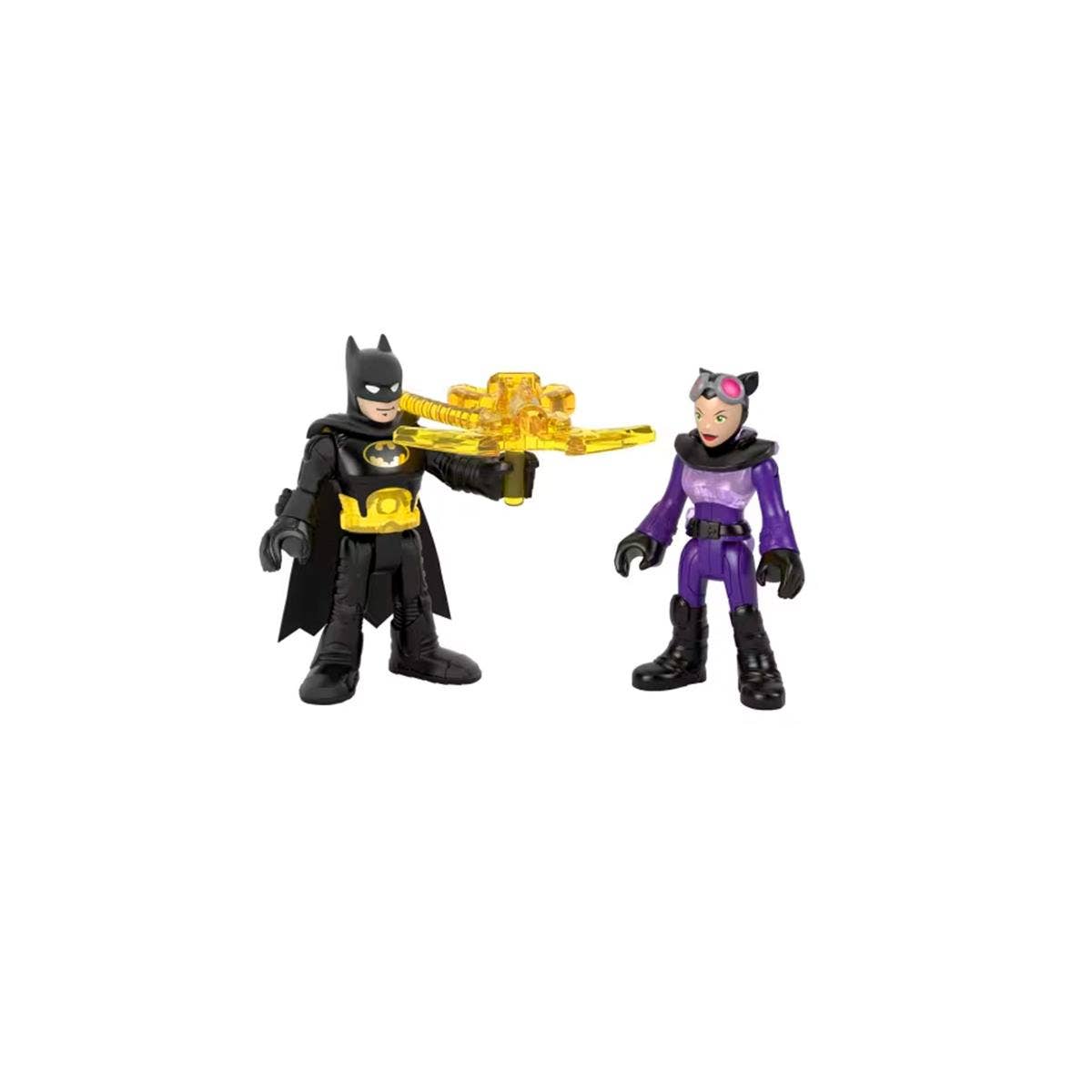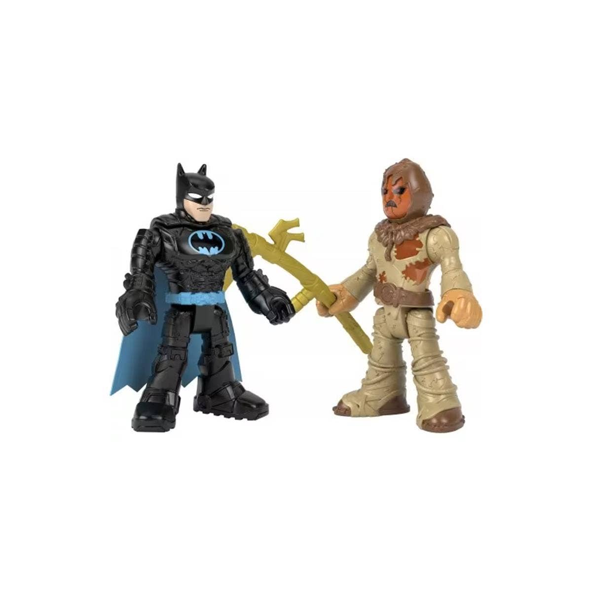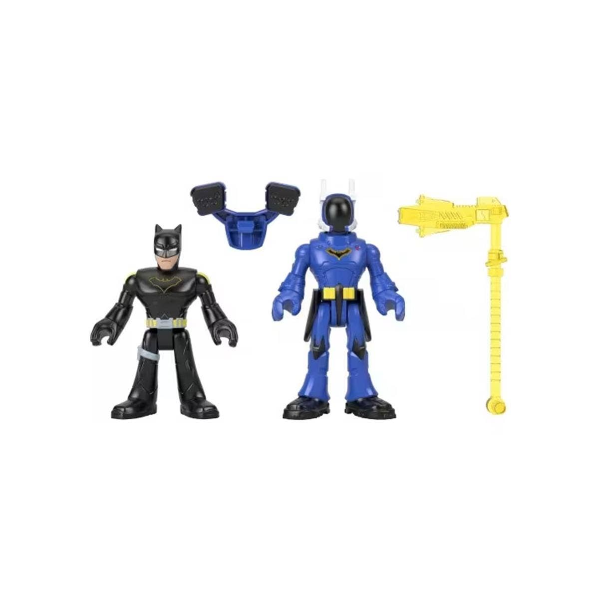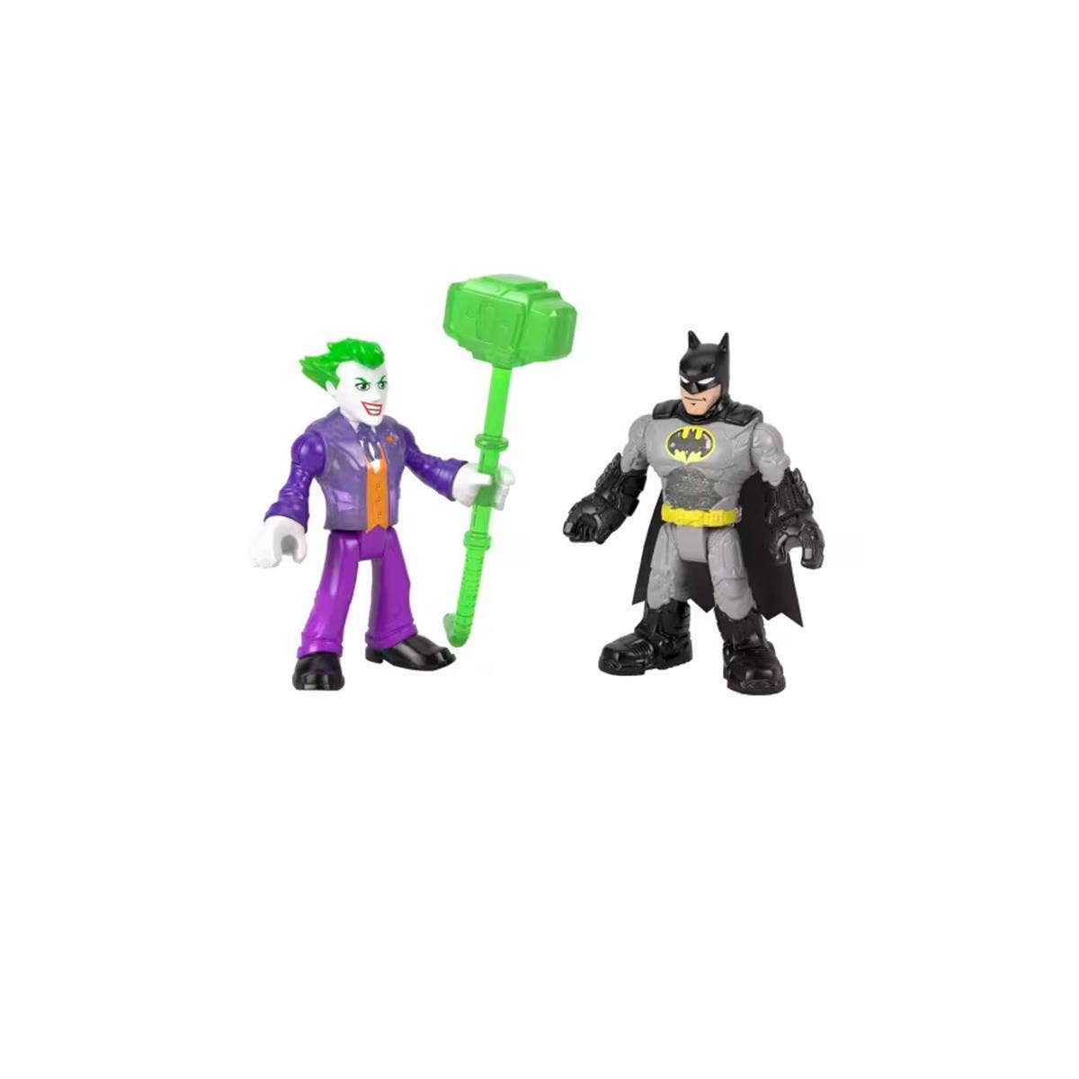 Sett með tvemur fígúrum úr DC heiminum ásamt vopni.