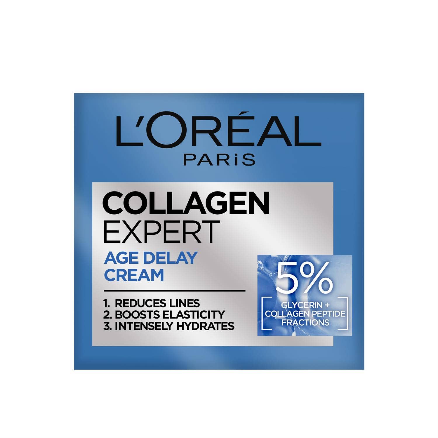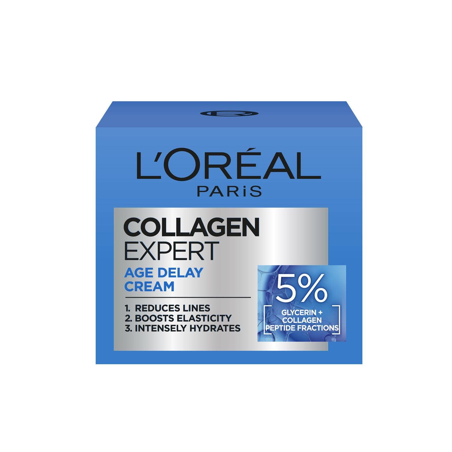 L'Oréal Paris Collagen Expert Age Delay Cream er létt dagkrem sem hentar öllum húðgerðum, dregur úr fínum línum, eykur teygjanleika og veitir húðinni djúpan raka.