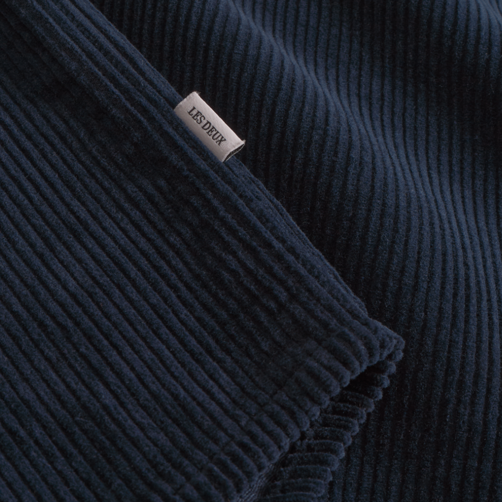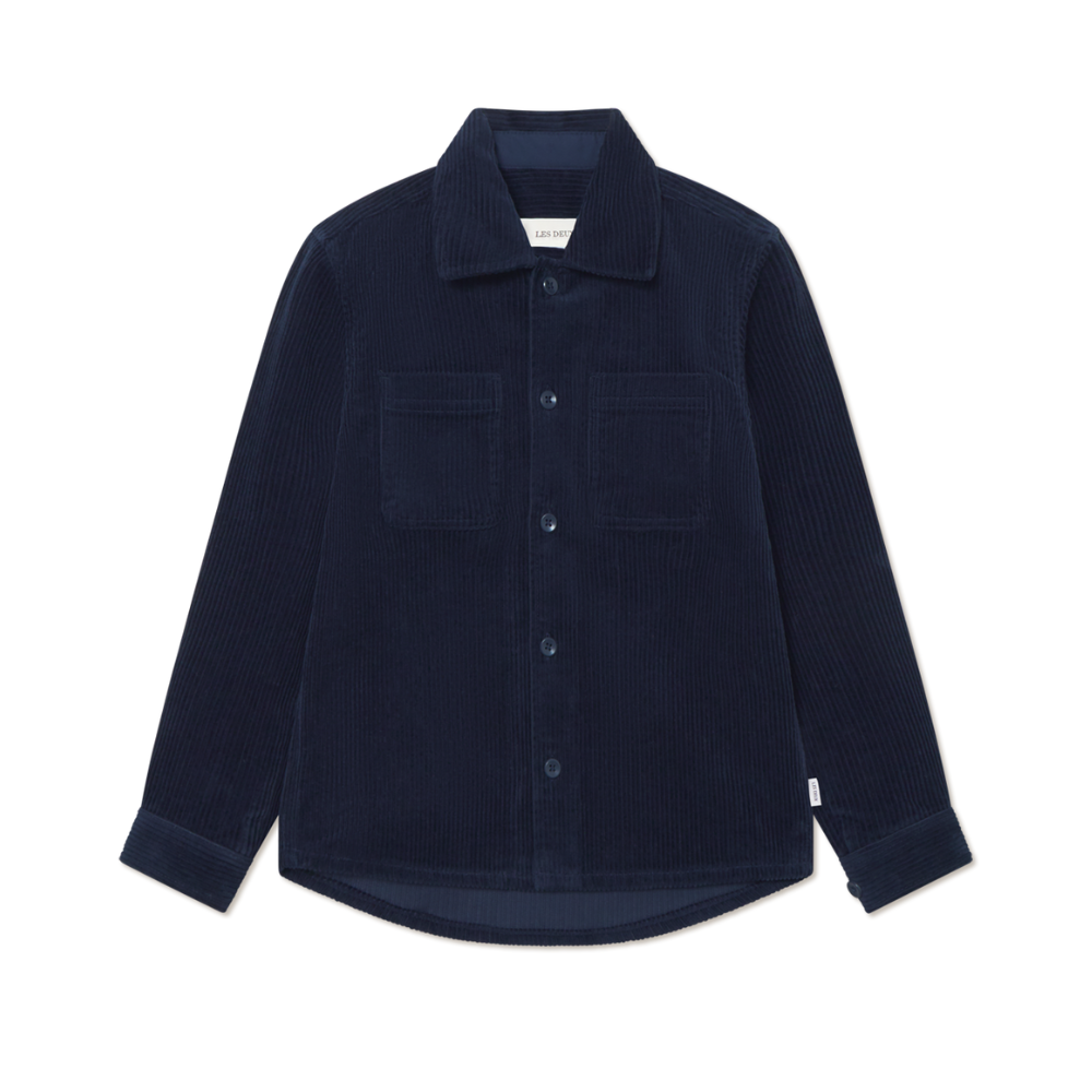 Dökk blá, hneppt flauels skyrta frá Les Deux. 100% bómull.