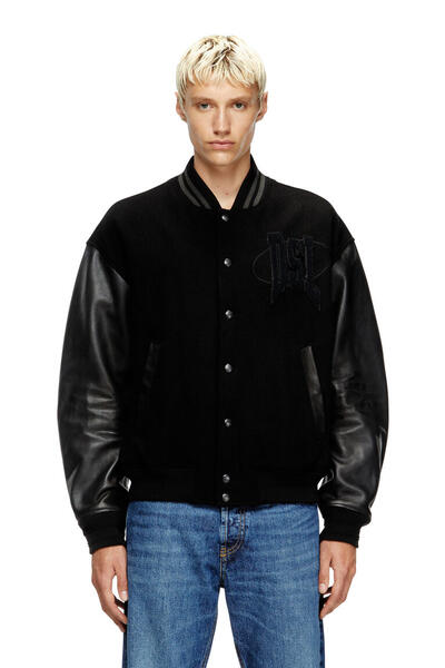 Flottur bomber jakki í háskólajakkastíl frá Diesel. Ermarnar eru úr leðri.