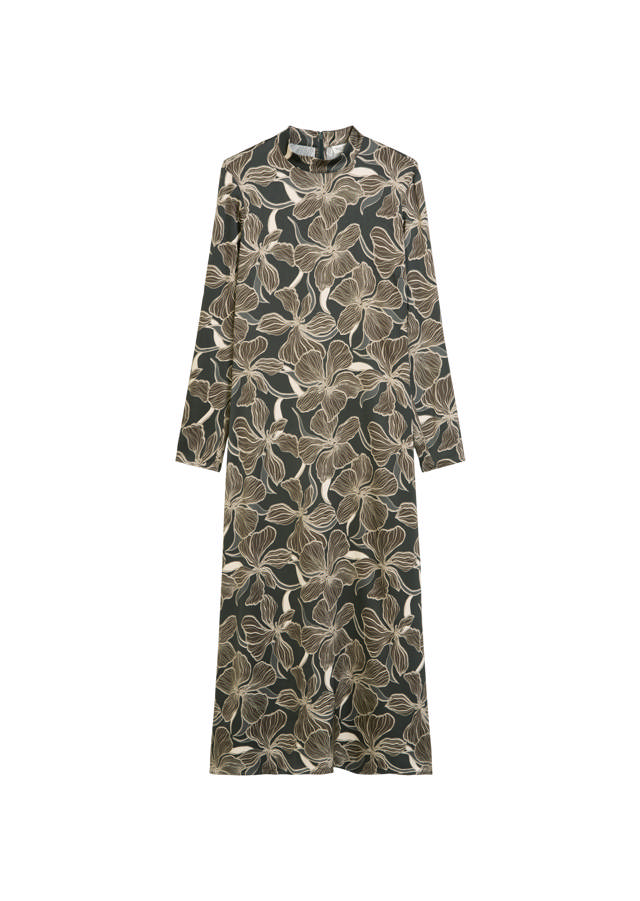 Kvenlegur, einfaldur og stílhreinn, síður kjóll úr hágæða viscose-stretch. Kraginn nær alveg upp í háls, ermar eru þröngar og síðar og brjóstsaumar sem móta kjólinn fallega. Rennilás á baki. ... Sjá nánar