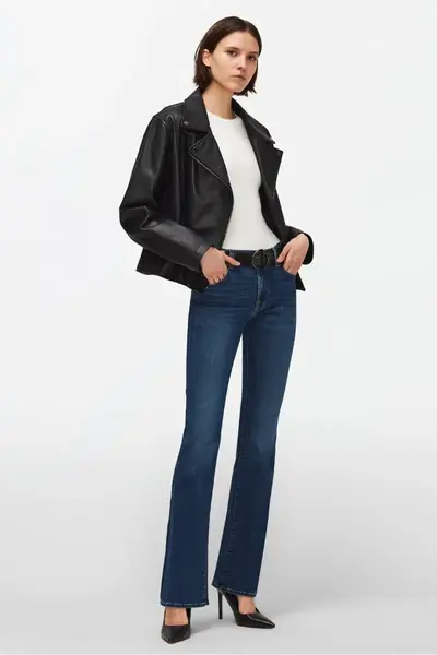 Fallegar bootcup gallabuxur frá 7 For All Mankind, hægt að para með hælaskóm og jakka.