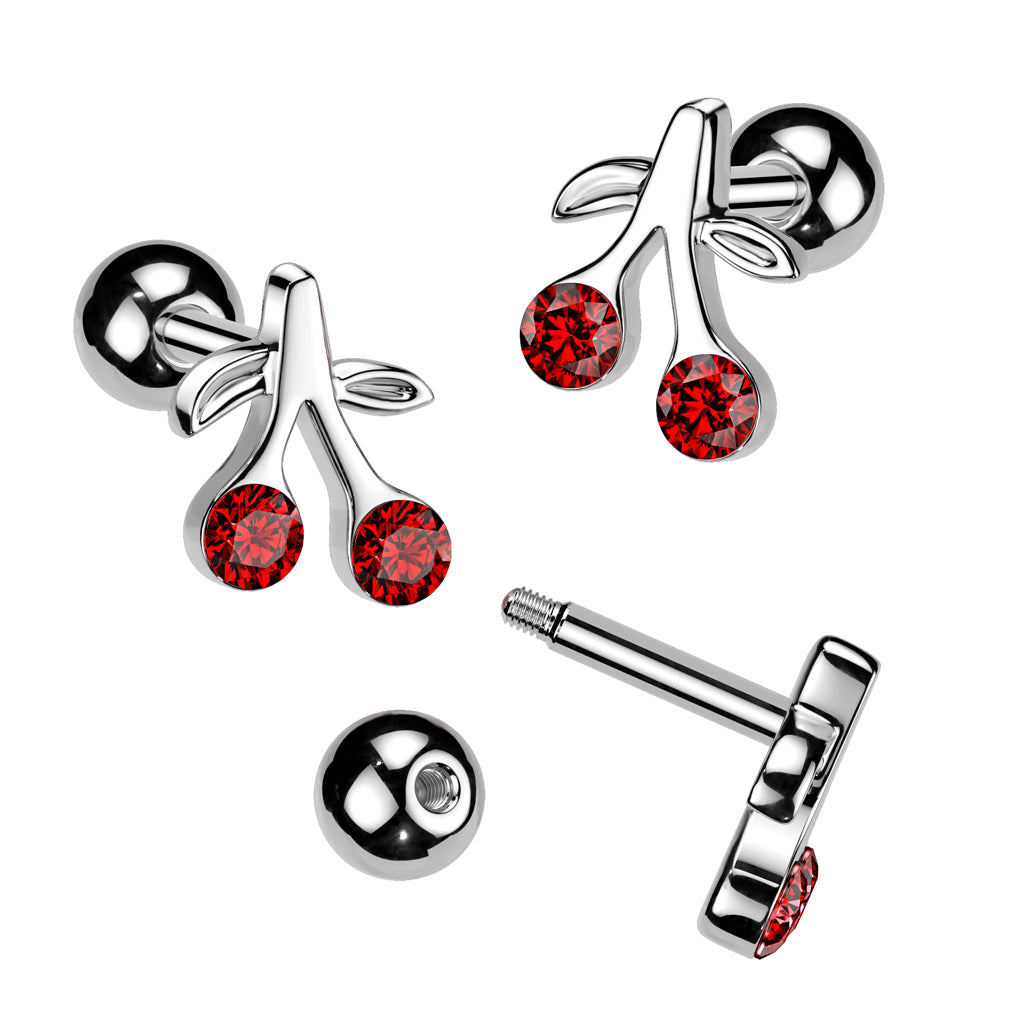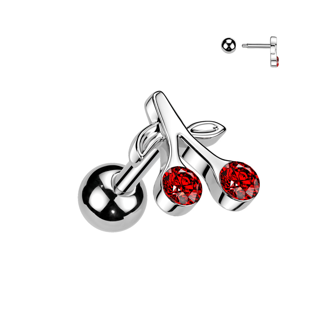 Cherry með steinum 316L Surgical Steel. Passar í t.d. Helix, Tragus, Conch, forward helix, medusa, labret, flat og fleiri göt. Lokkurinn er 6mm að lengd og 1.2mm þykkur með kúlu festingu. ... Sjá nánar