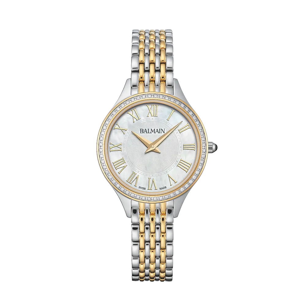 Úrkassi: 29mm – 56 demantar (Top Wesselton W-SI – 0,221ct) – stál & gyllt stál Úrverk: Rafhlaða – svissneskt Vatnsvörn: 50M Skífa: Hvít perlumóðir – áfest klukkustundamerki – vísar Gler: ... Sjá nánar