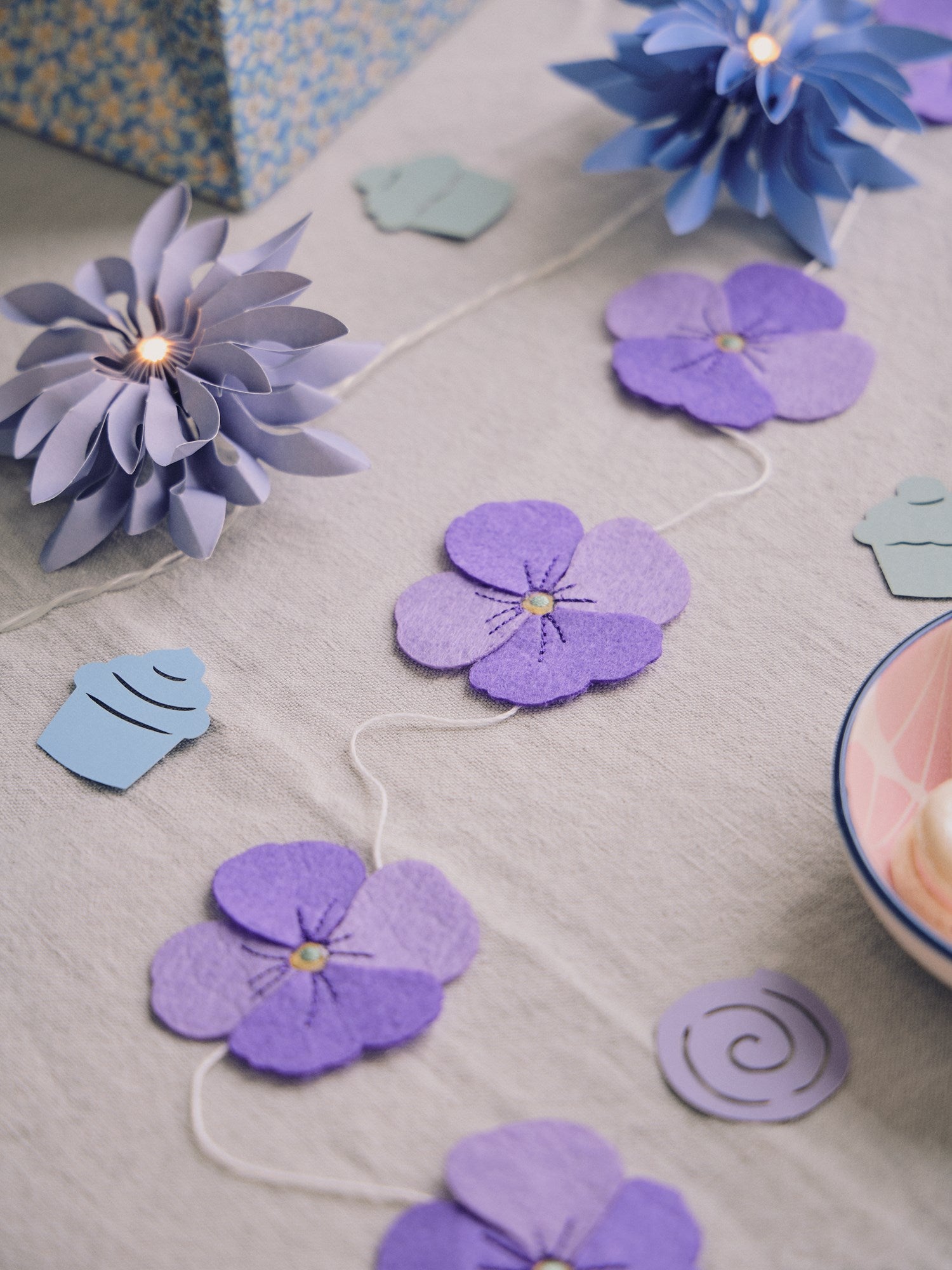 Whimsical floral charm "This garland brings a burst of colour to any celebration," Clara notes as she hangs the felt flowers. Anna smiles, "It is like adding a touch of springtime indoors, ... Sjá nánar