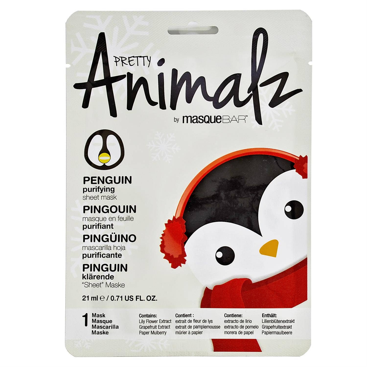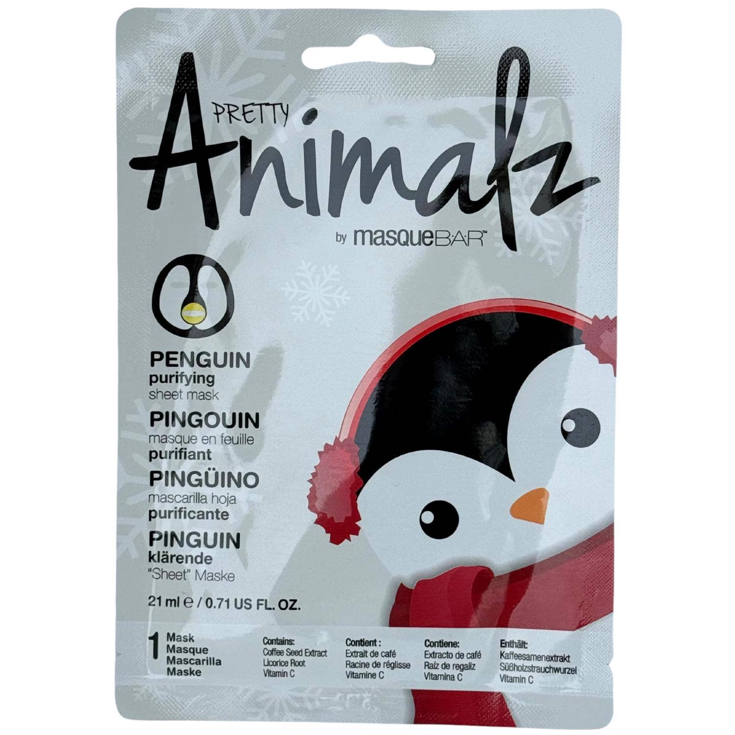 Rakagefandi og hreinsandi andlitsmaski með mynd af mörgæs.