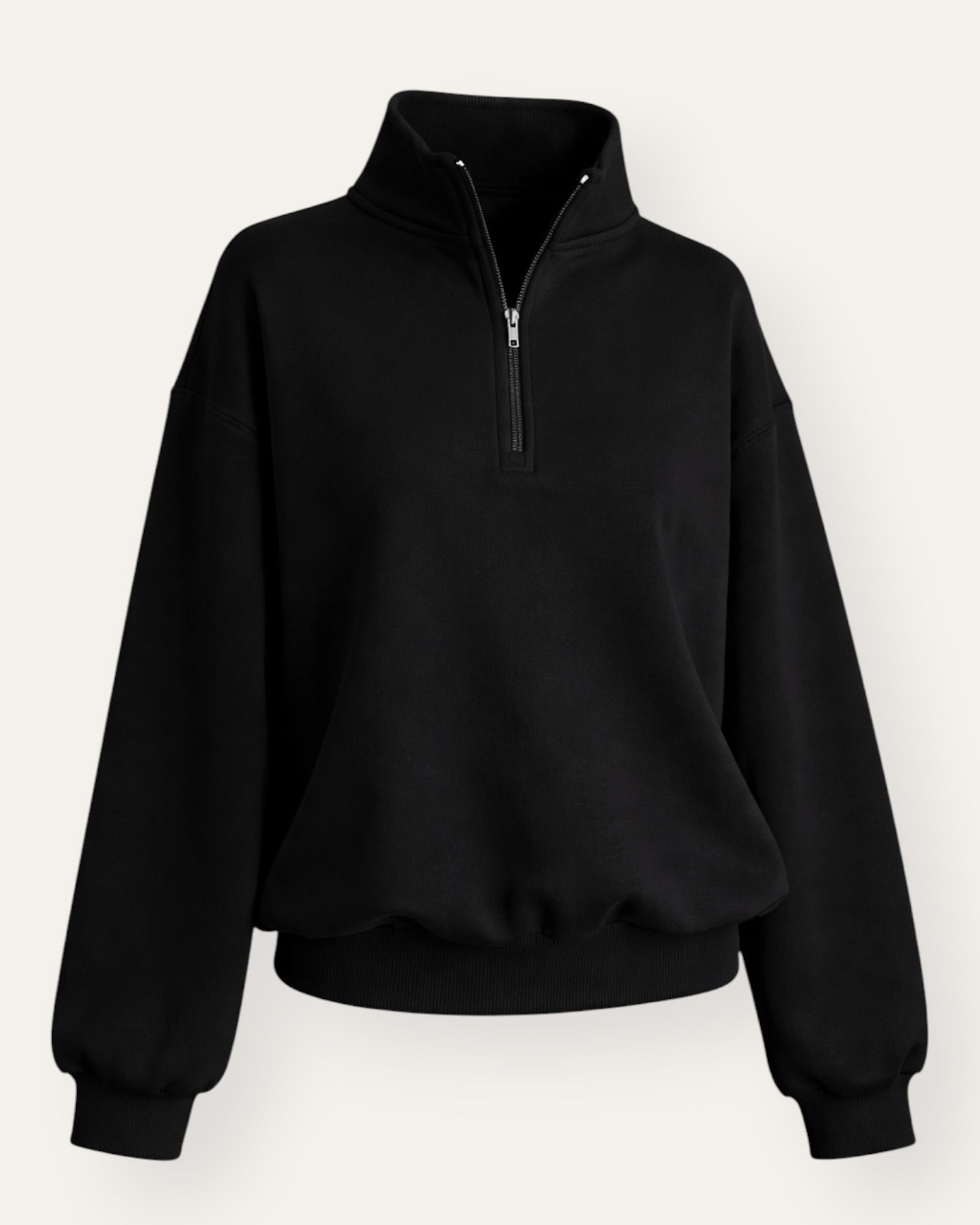 Oversized jogging peysa – zip kragi Þessi oversized jogging peysa er fullkomin blanda af þægindum og stíl. Hún er með slakri, oversized passformi sem gefur effortless og trendy look – ... Sjá nánar