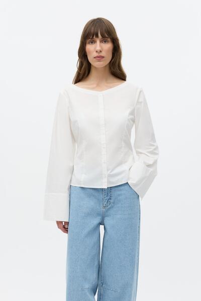 Flott skyrta frá Envii með ‘boat-neck’ kraga.