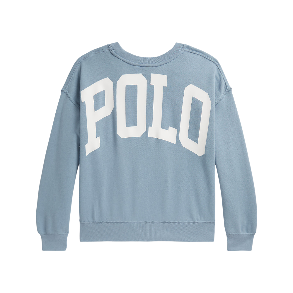 ljós blá peysa frá Polo Ralph Lauren með litlu logo að framan og stóru að aftan. 100% bómull.