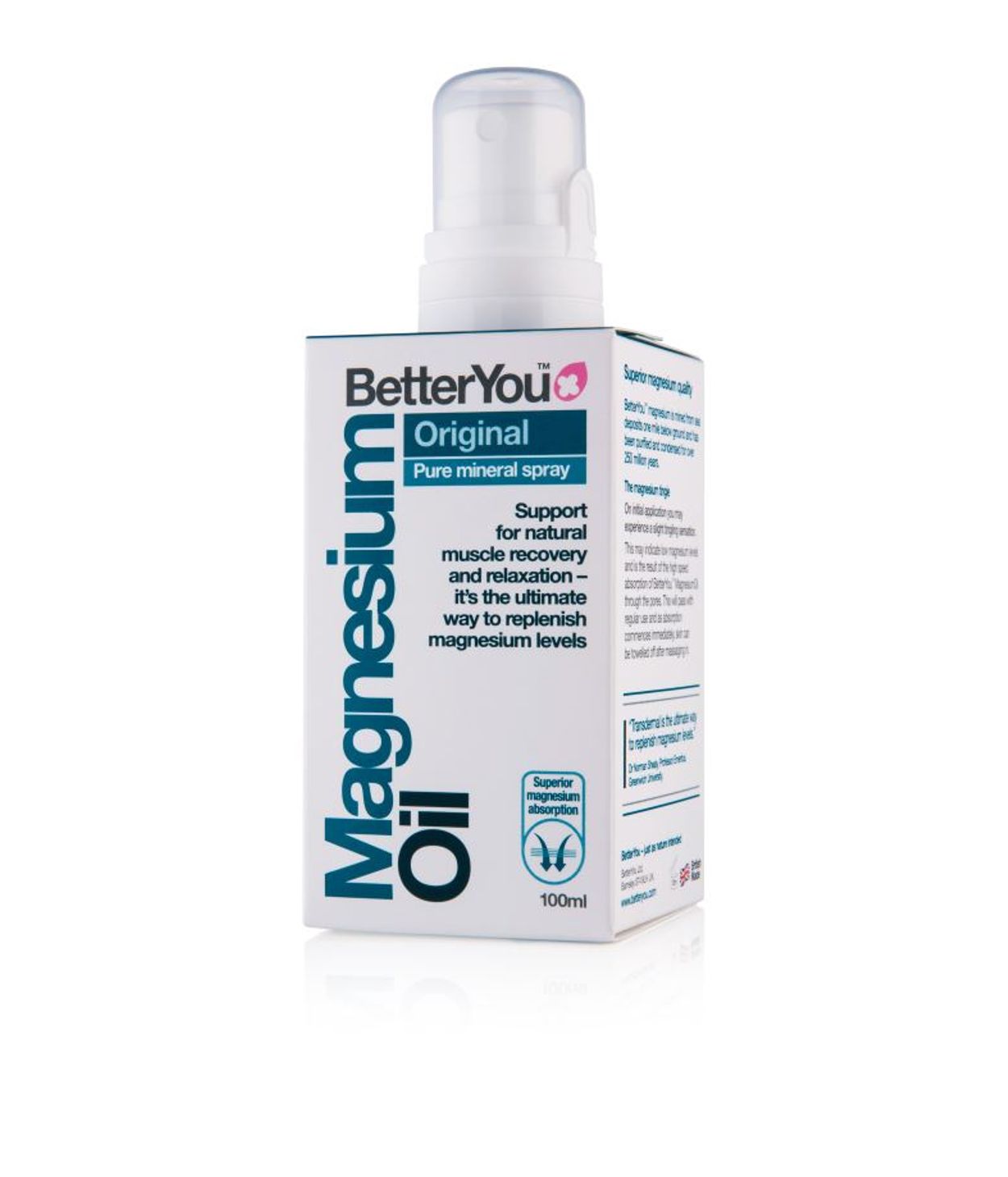 Magnesíum Original er magnesíum klóríð bætt lindarvatni og er það hreinasta varan af þeim magnesíum olíum sem í boði eru frá Better You.