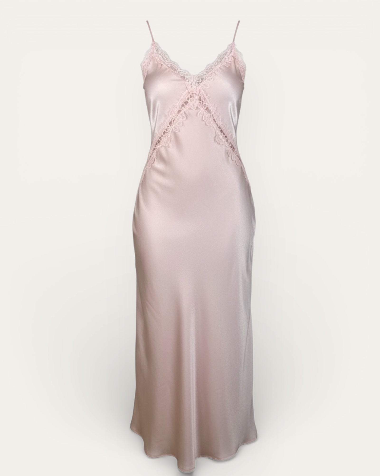 Æðislega fallegur blúndu kjóll úr mjög mjúku satín efni, það er engin teygja í efninu modelið er 168cm og er í stærð S