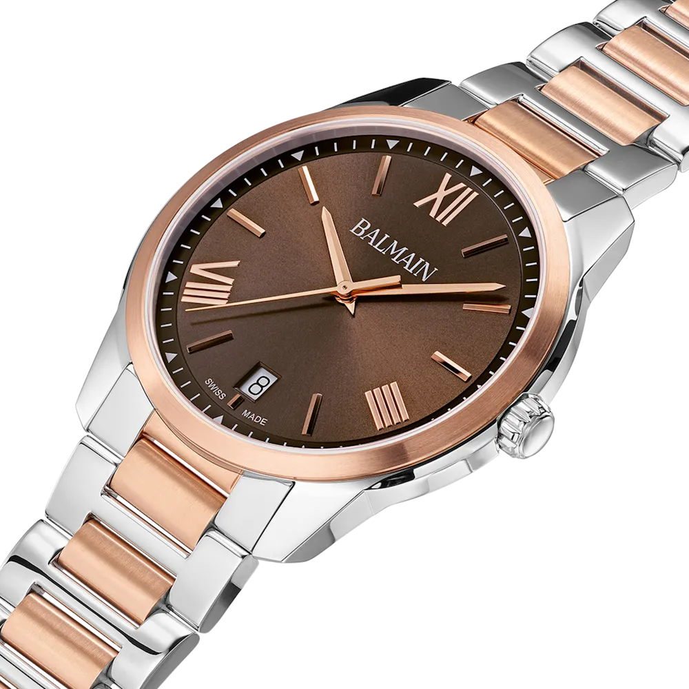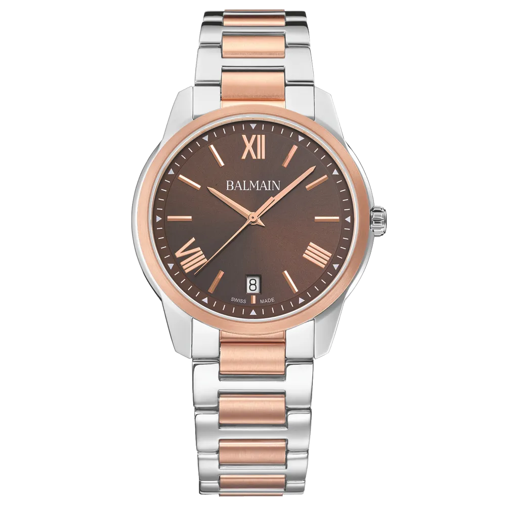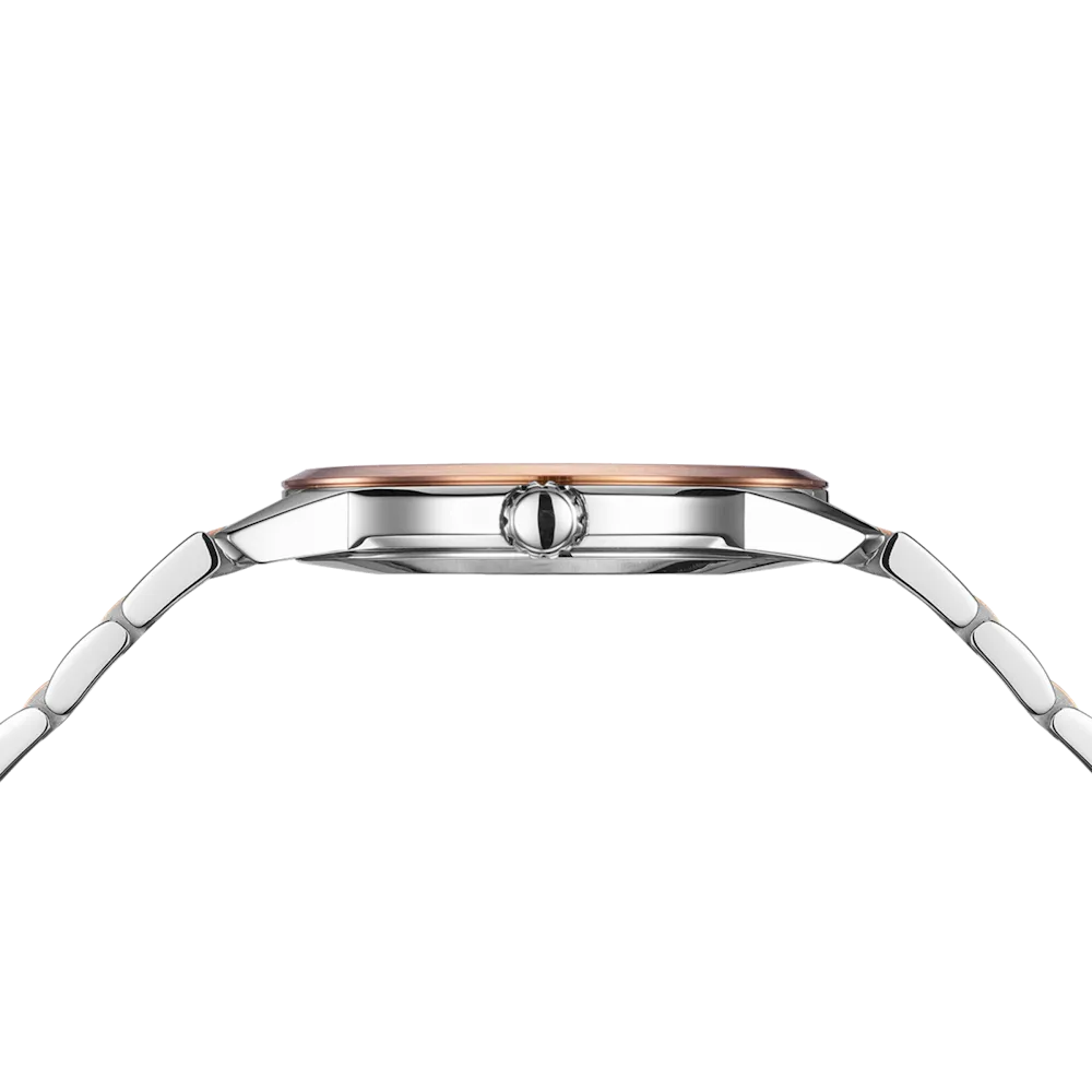 Úrkassi: 40mm – stál & rauðagyllt Úrverk: Rafhlaða – svissneskt Vatnsvörn: 50M Skífa: Brún – áfest strik – dagsetning hjá kl 6 – vísar Gler: Safírgler – speglunarvörn Keðja: Stál & rauðagyllt ... Sjá nánar