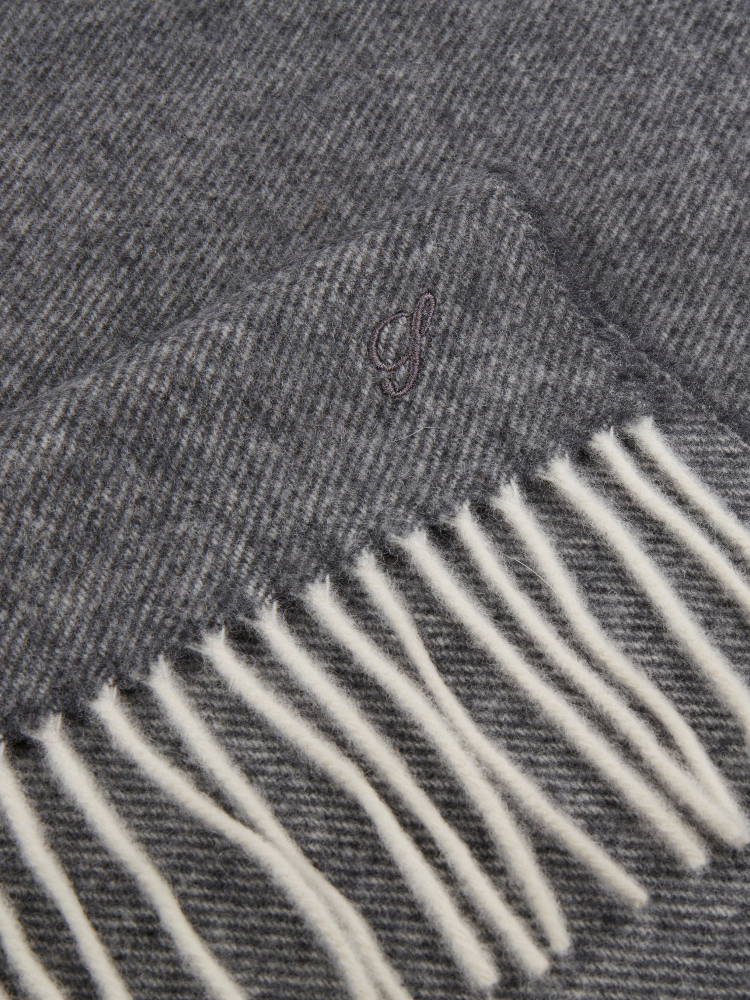 This incredibly soft scarf is spun from wool and woven in a characteristic twill weave in white and navy. Finished with soft white fringes. It is a versatile accessory that goes with ... Sjá nánar